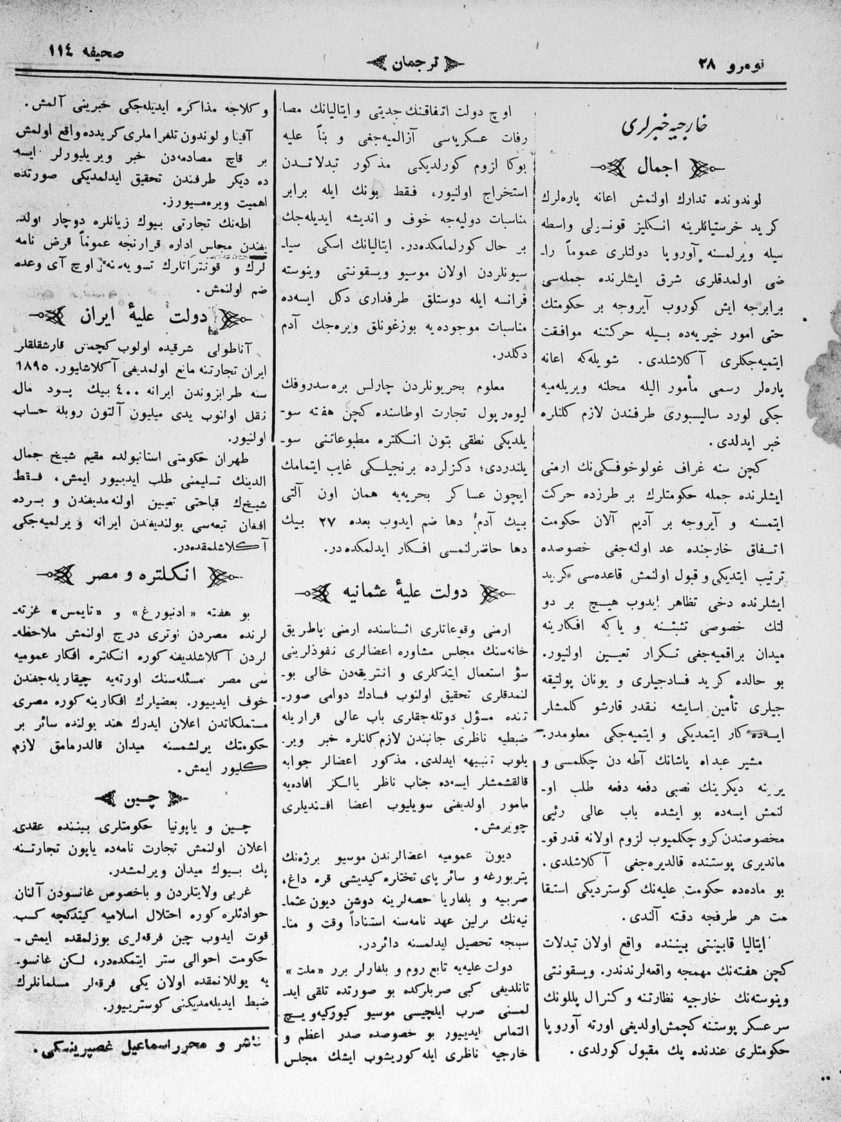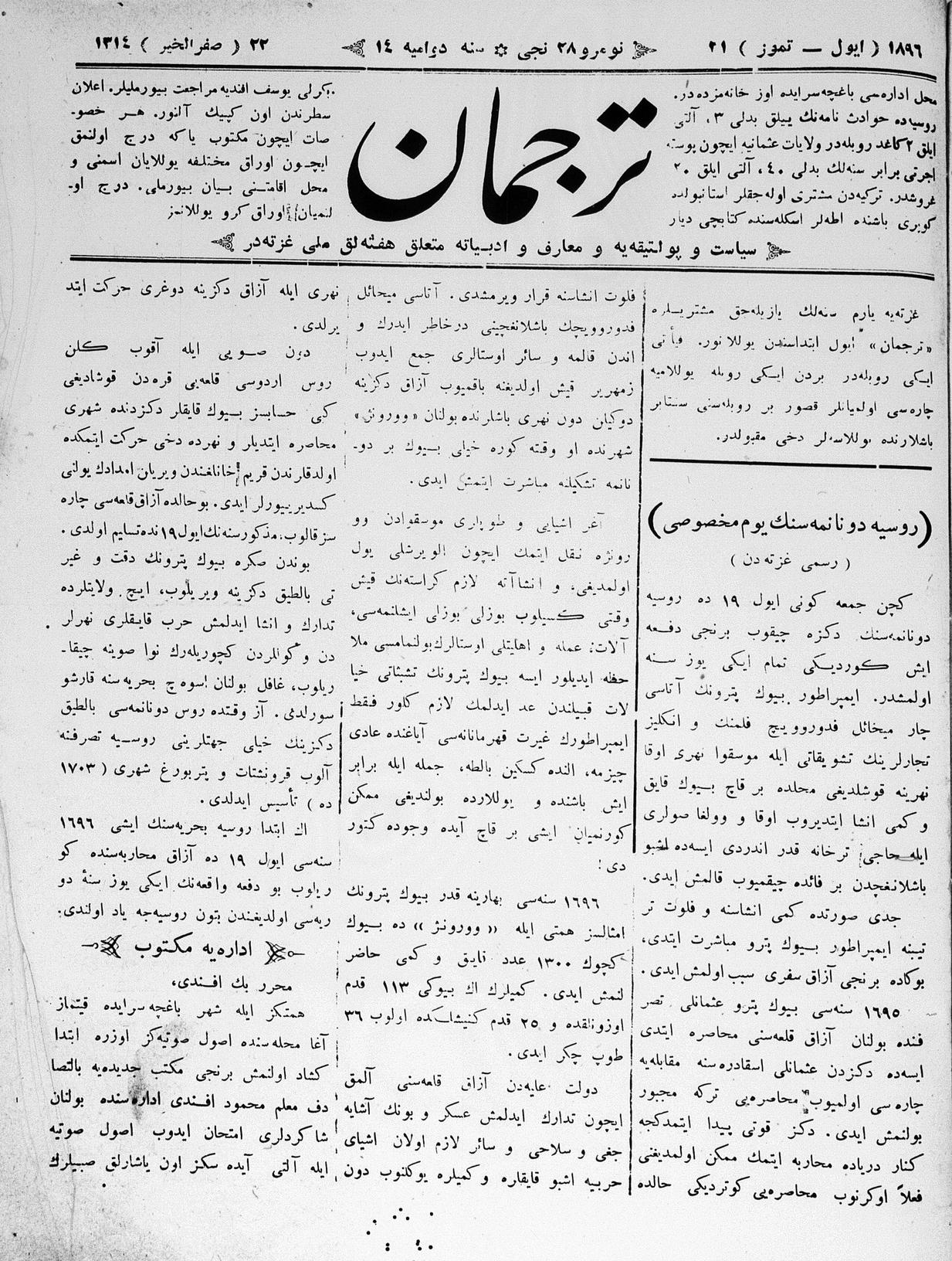 The name of the newspaper changed to Tercüman-ı Ahval-i Zaman in 1905. In 1909, it started to be published under its first name, Tercüman.