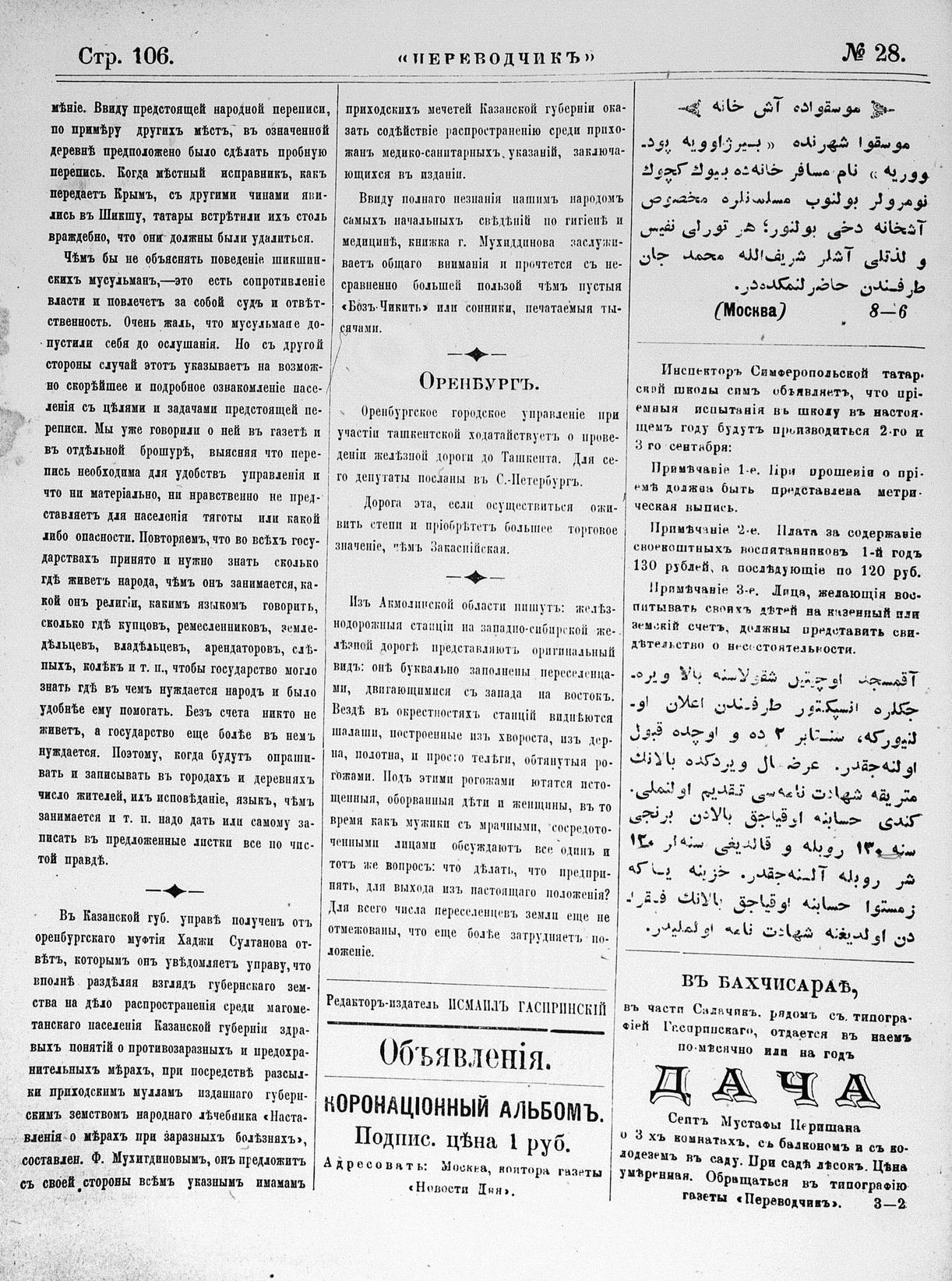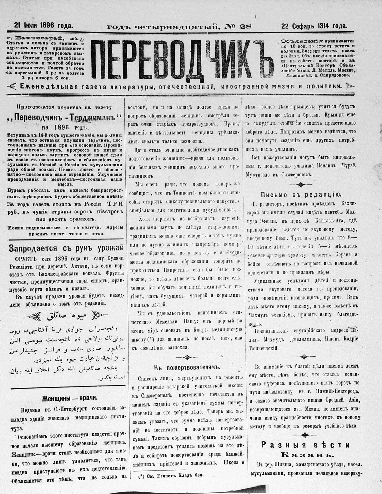 Turkish-Russian newspaper published in Crimea by İsmail Gaspıralı.