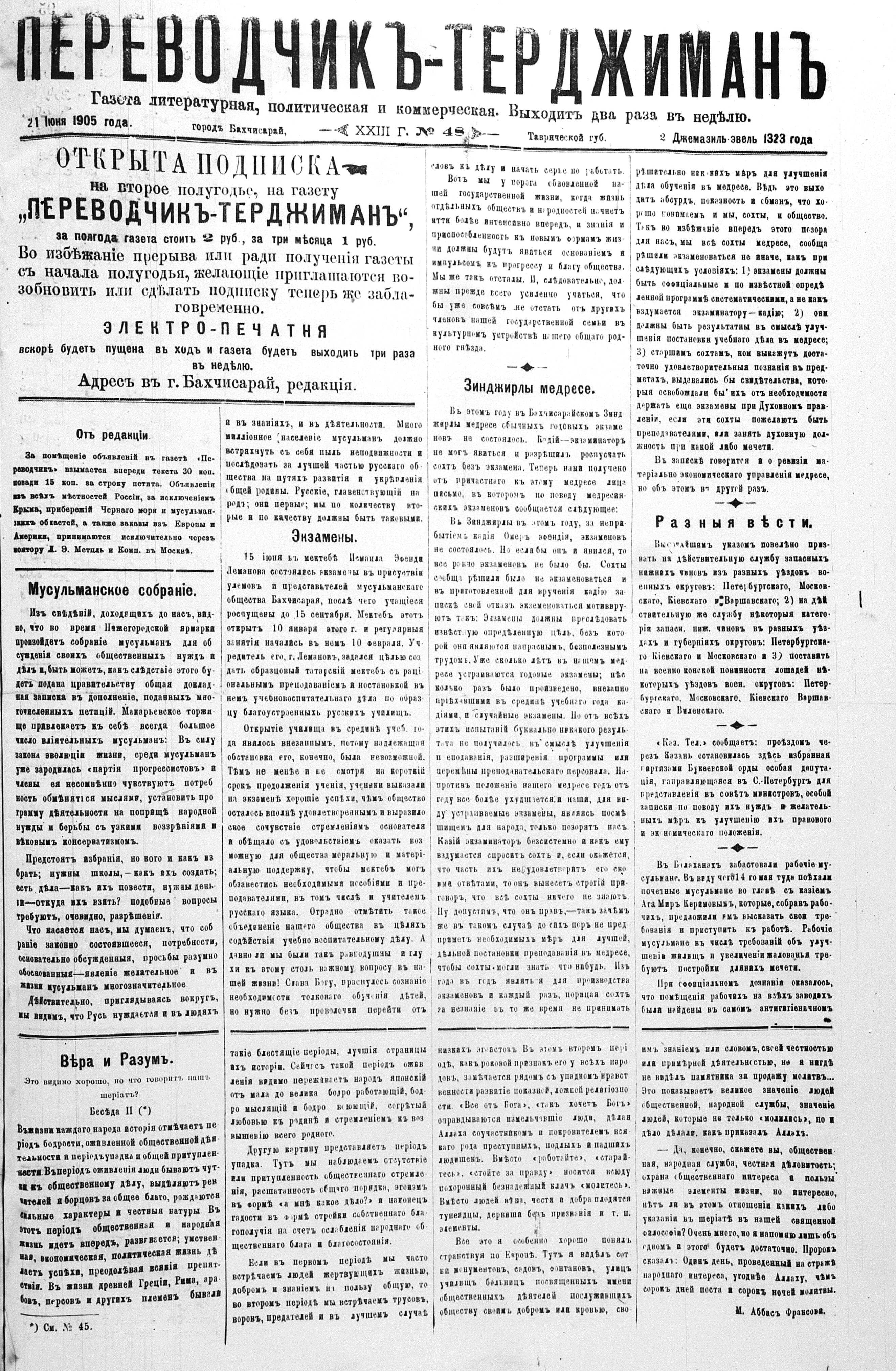 Turkish-Russian newspaper published in Crimea by İsmail Gaspıralı.