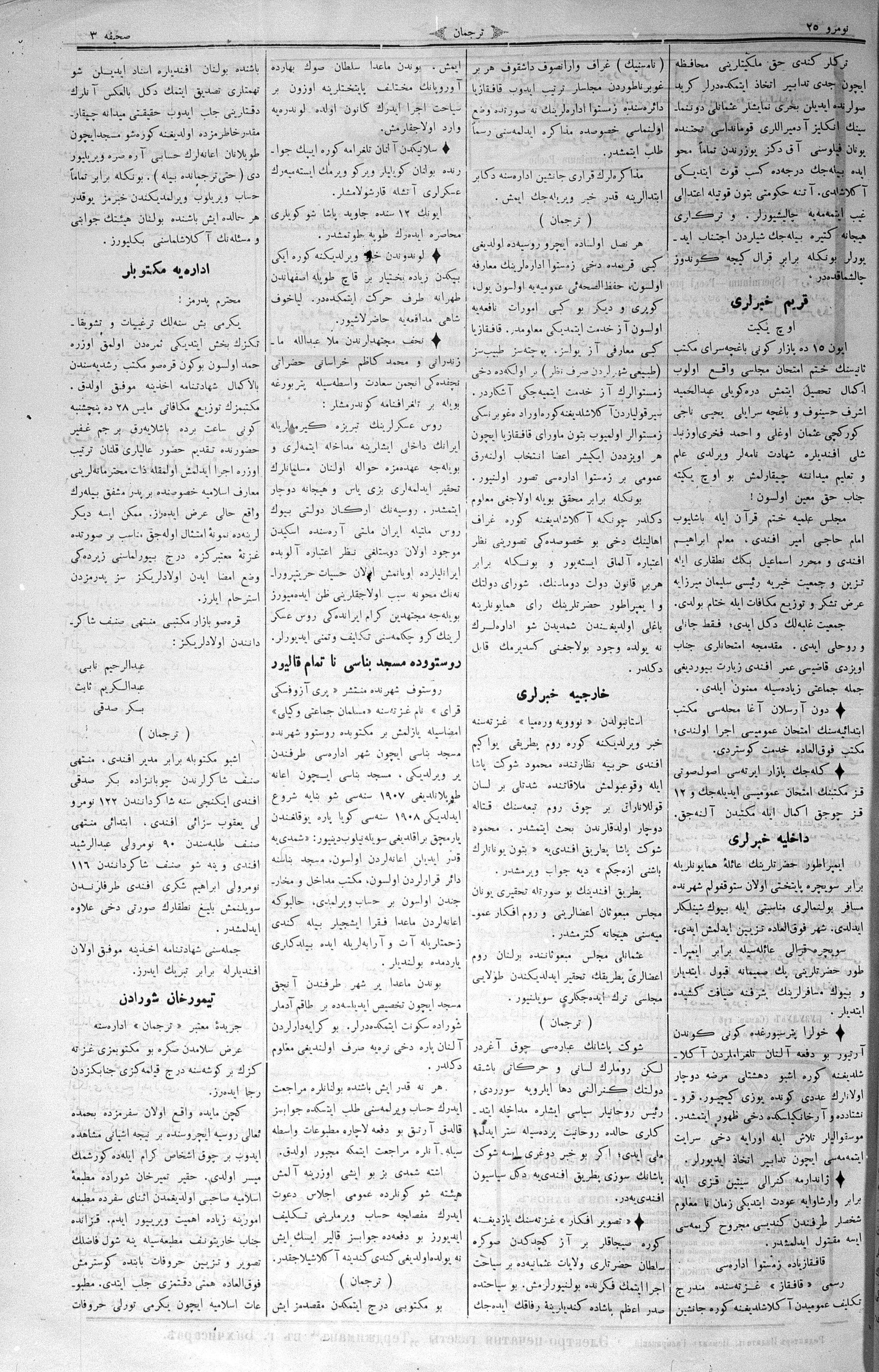 The name of the newspaper changed to Tercüman-ı Ahval-i Zaman in 1905. In 1909, it started to be published under its first name, Tercüman.