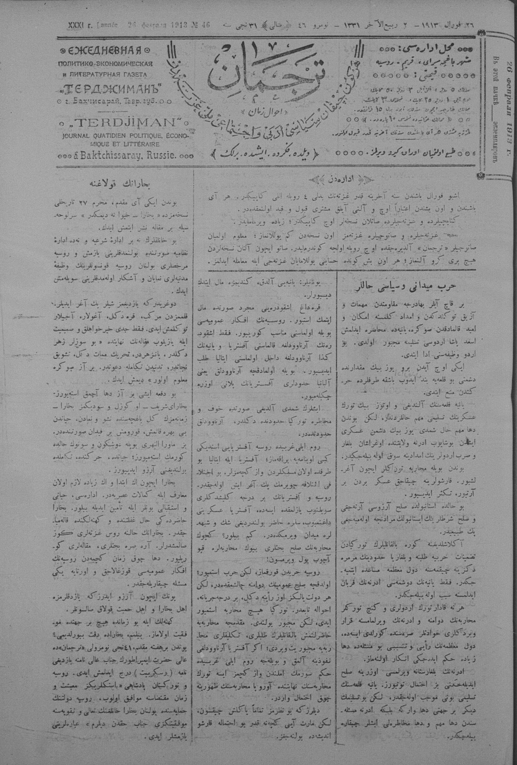 Tercüman, 26 February 1913 Year 31 No 46