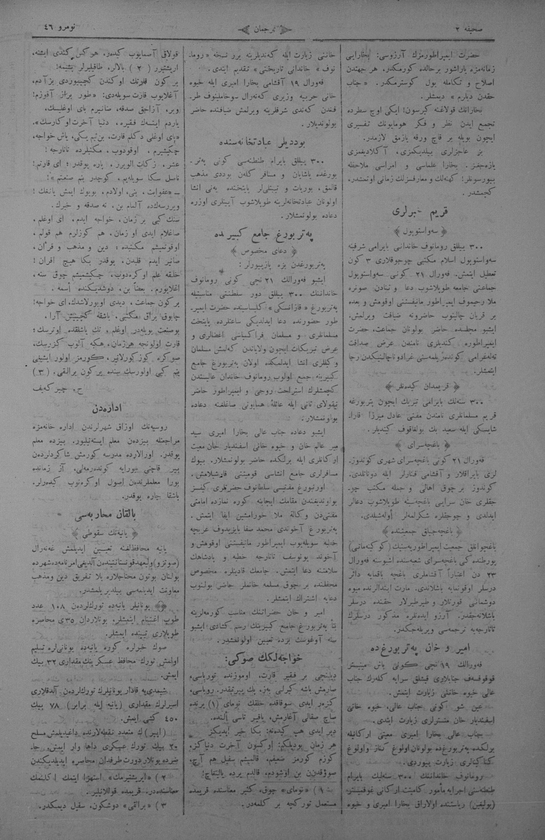 The name of the newspaper changed to Tercüman-ı Ahval-i Zaman in 1905. In 1909, it started to be published under its first name, Tercüman.
