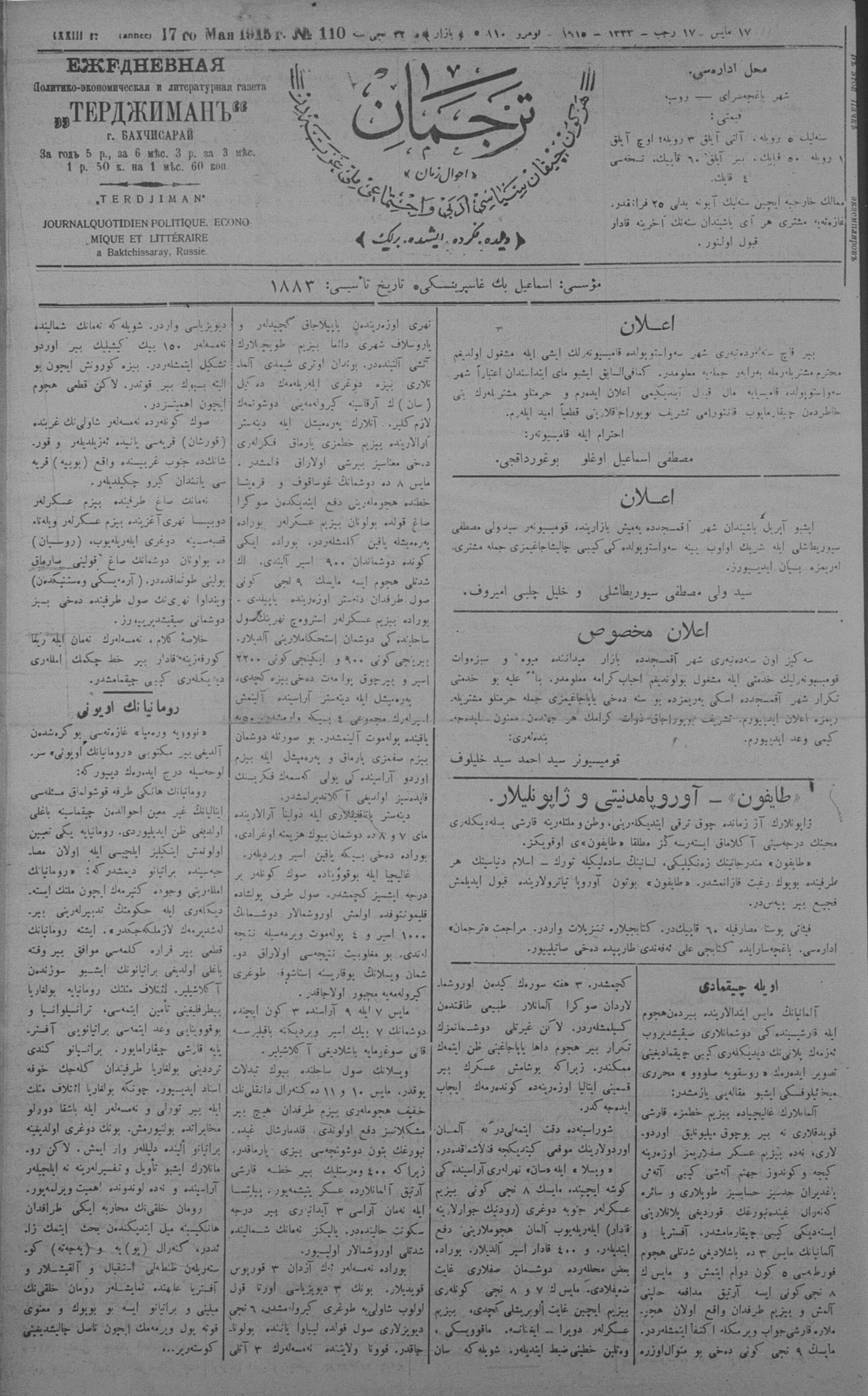 Tercüman, 17 May 1915 Year 33 No 110