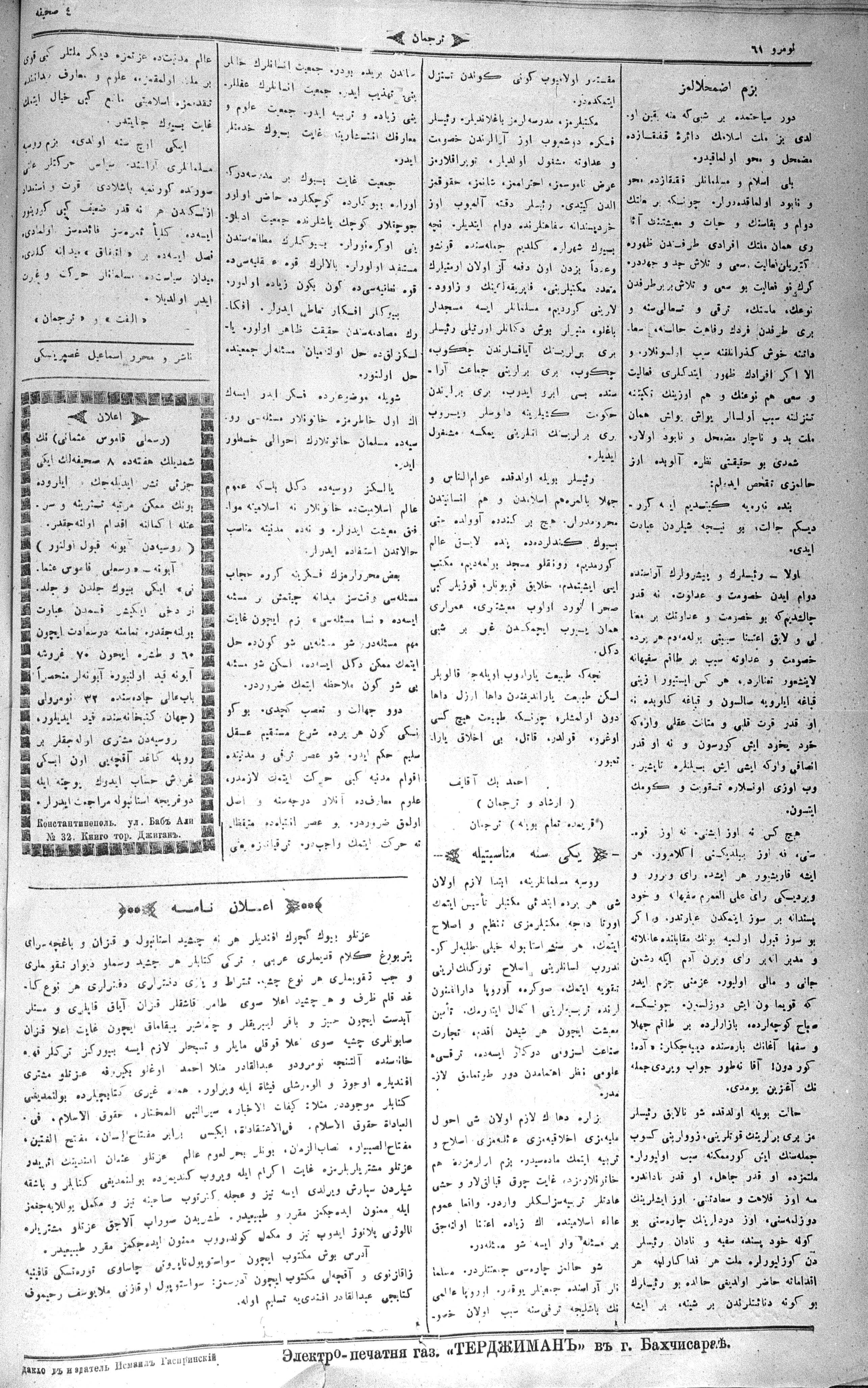 The name of the newspaper changed to Tercüman-ı Ahval-i Zaman in 1905. In 1909, it started to be published under its first name, Tercüman.