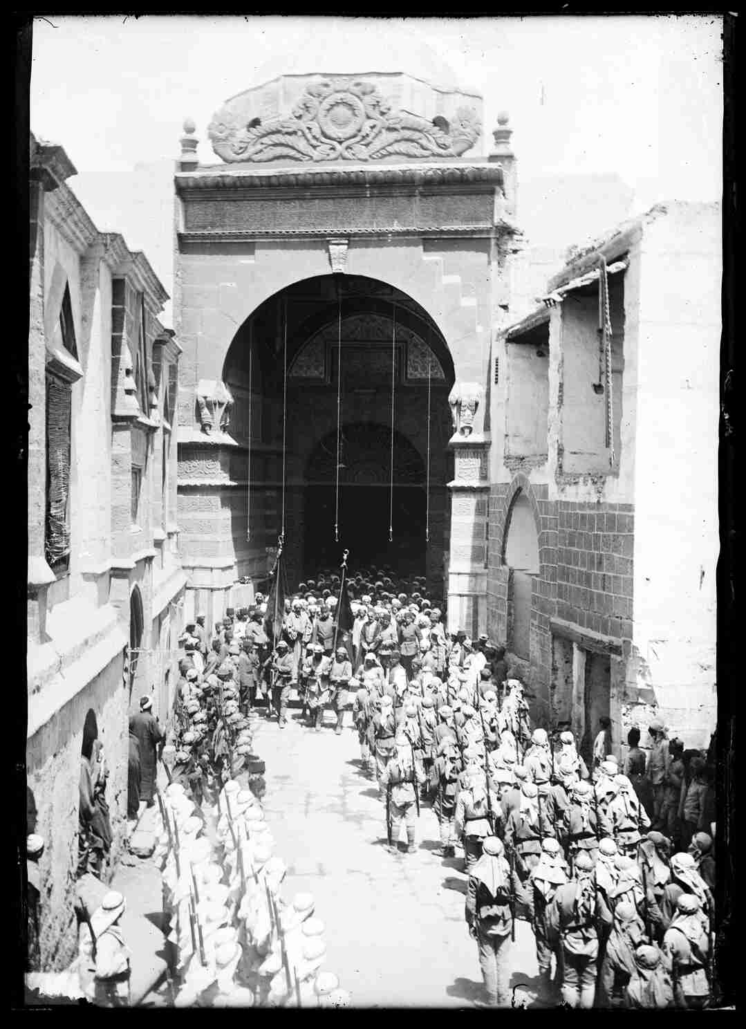 Fahreddin Paşa tarafından Medine`de Mescid-i Nebevi`de 42. ve 55. Alayların sancaklarına muharebe madalyası takılması töreni