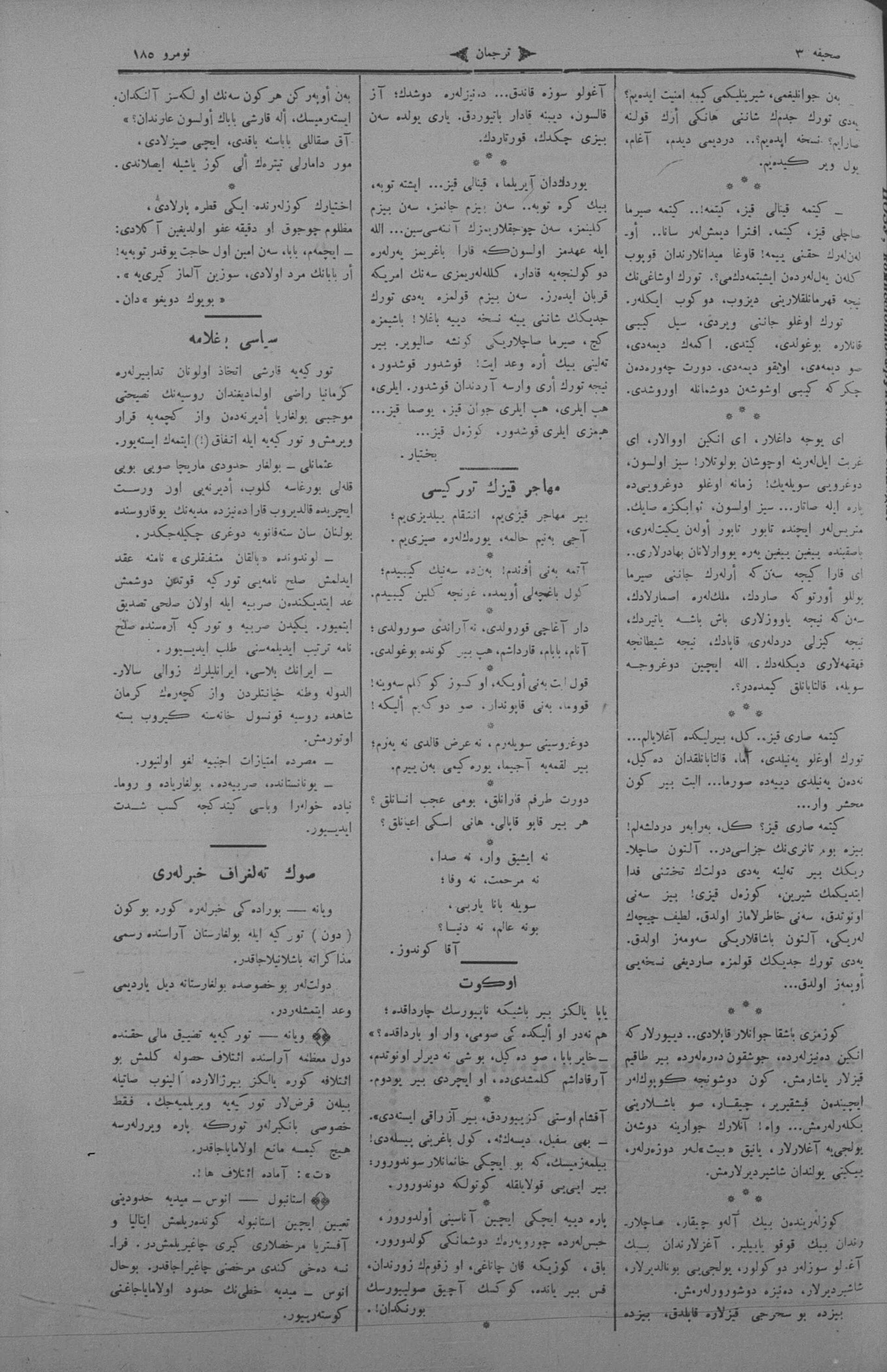 The name of the newspaper changed to Tercüman-ı Ahval-i Zaman in 1905. In 1909, it started to be published under its first name, Tercüman.