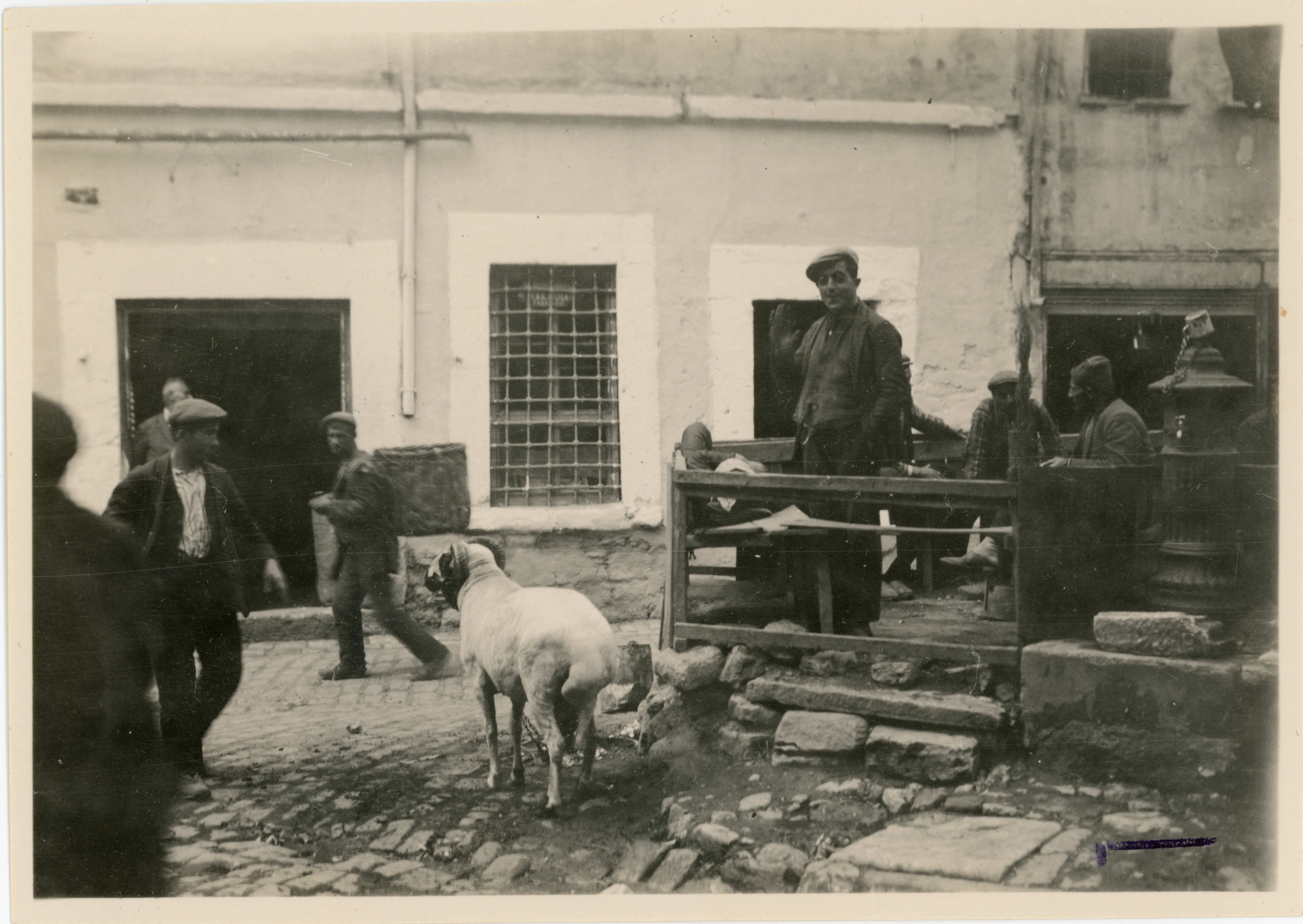 İstanbul'da koyun satıcısı ve bankta oturanlar