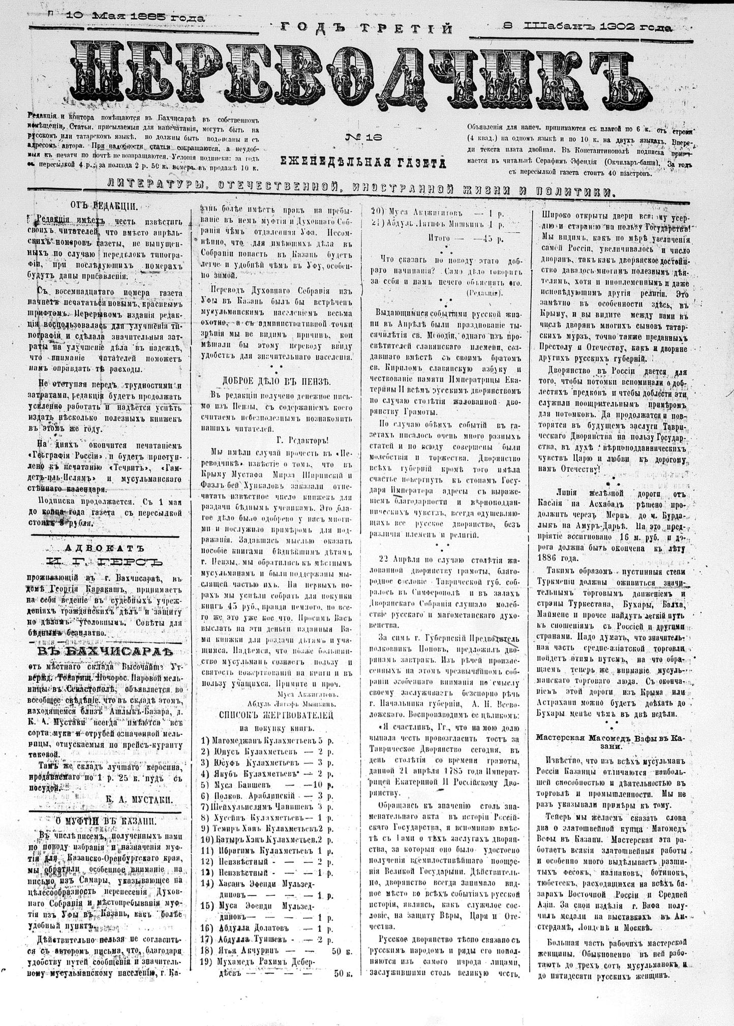 Turkish-Russian newspaper published in Crimea by Gaspirali Ismail Bey.