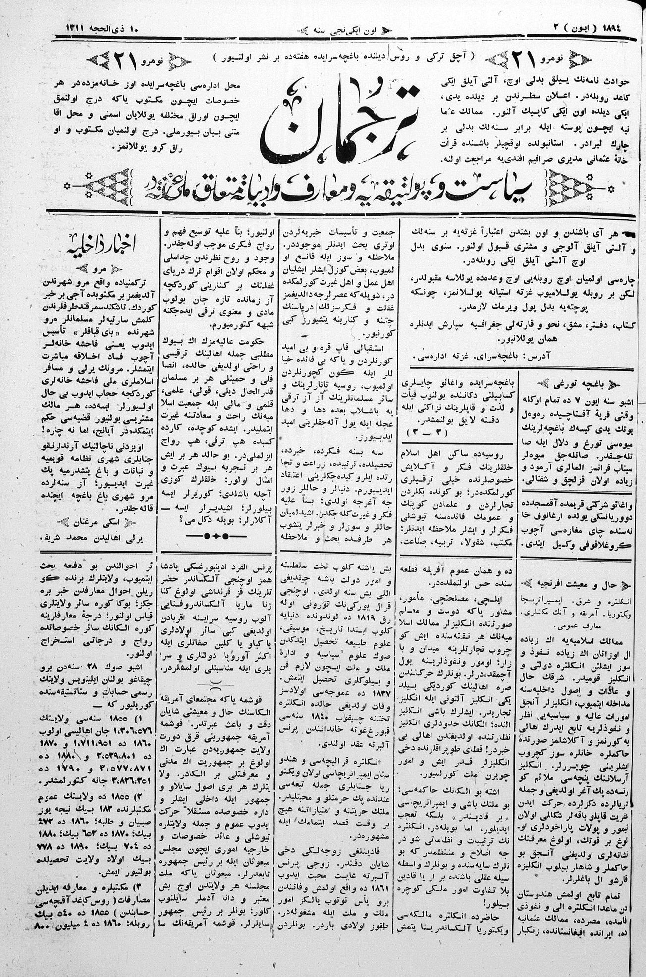 Tercüman, 02 June 1894 Year 12 No 21