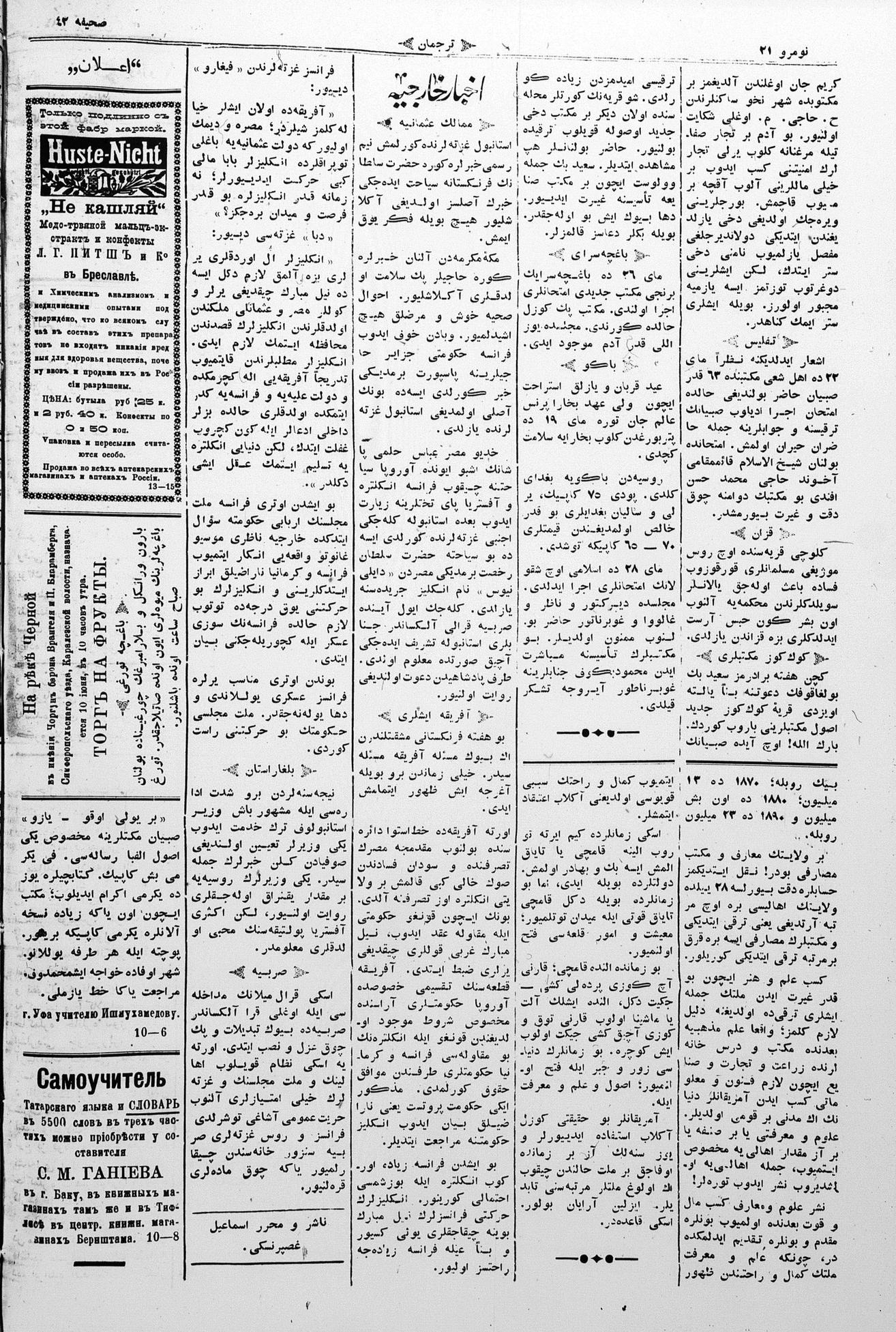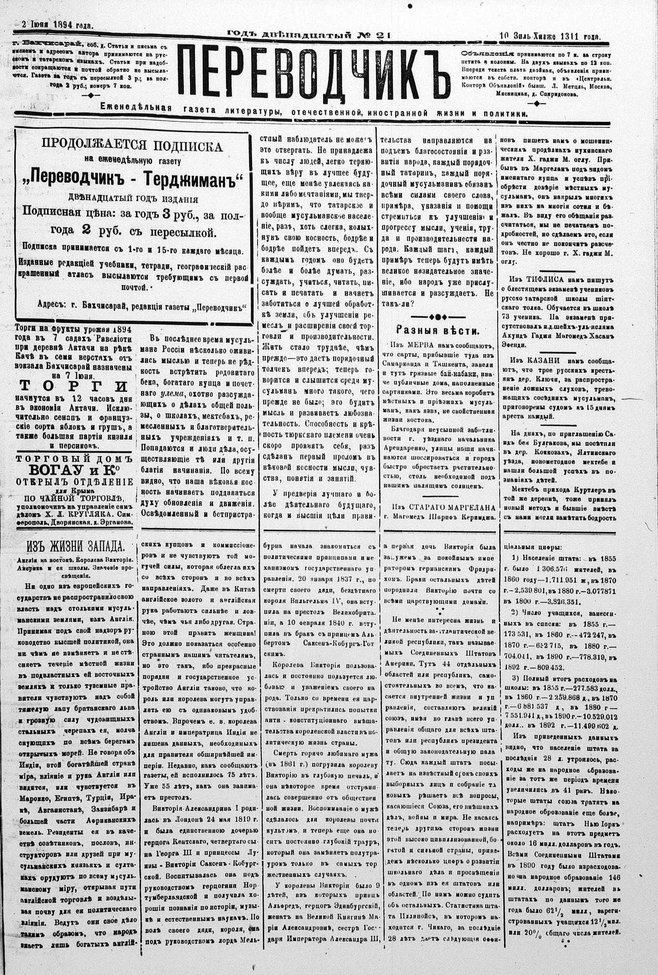 Turkish-Russian newspaper published in Crimea by İsmail Gaspıralı.