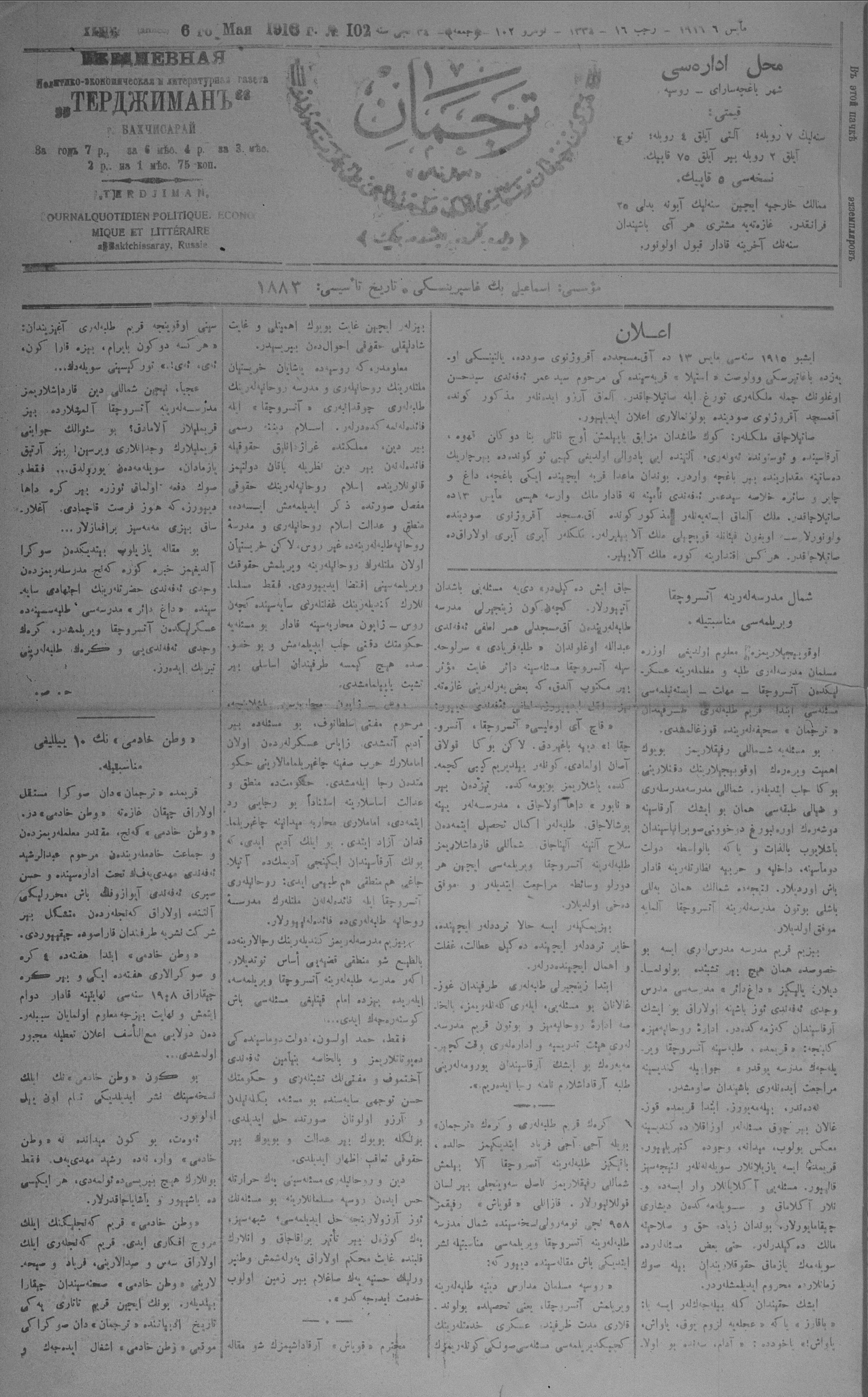 Turkish-Russian newspaper published in Crimea by İsmail Gaspıralı.