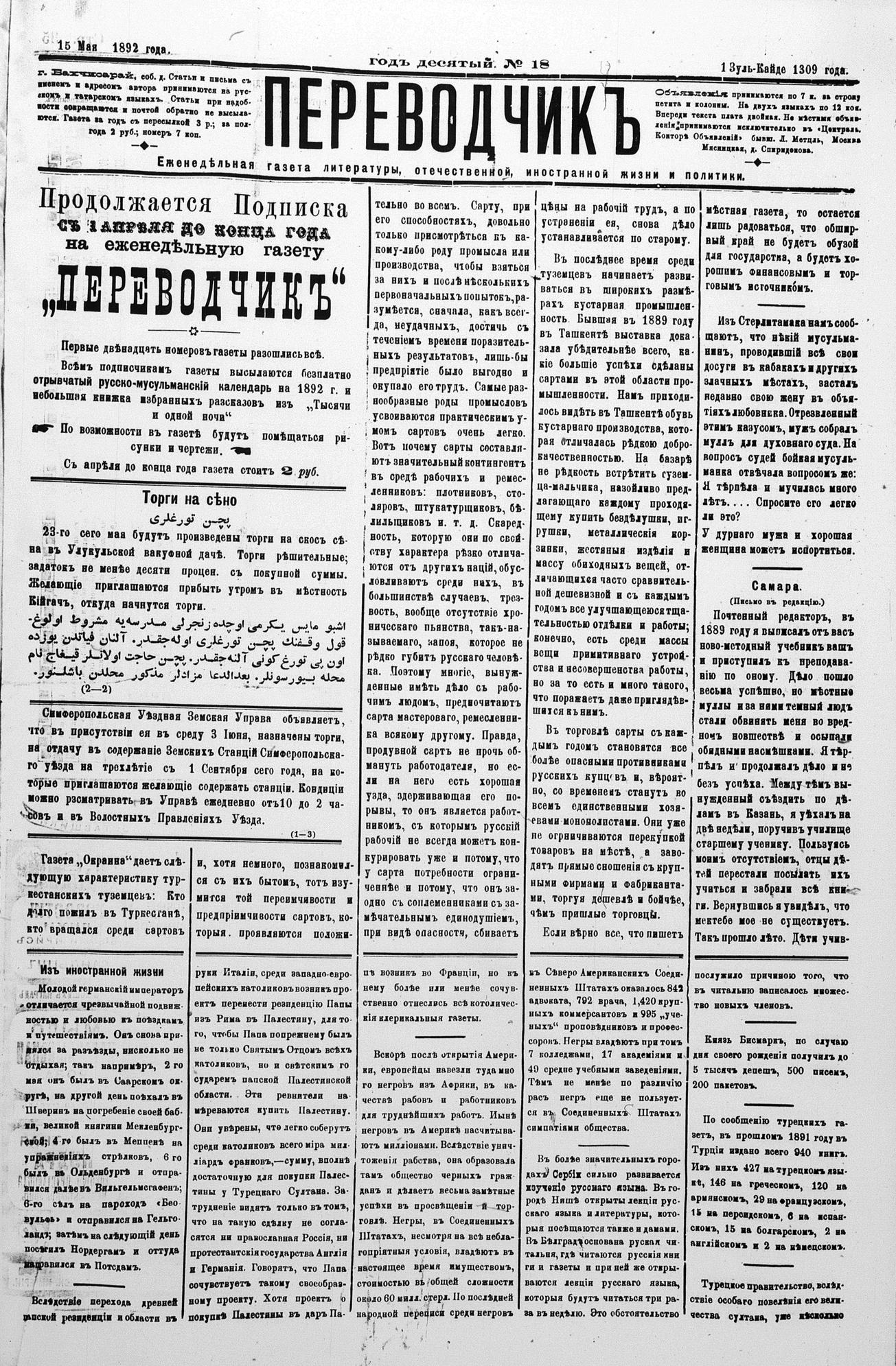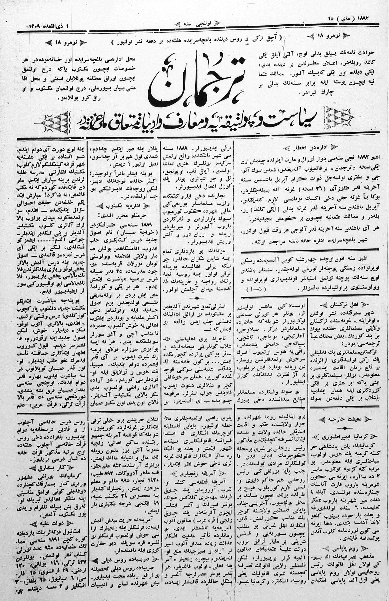 Tercüman, 15 May 1892 Year 10 No 18