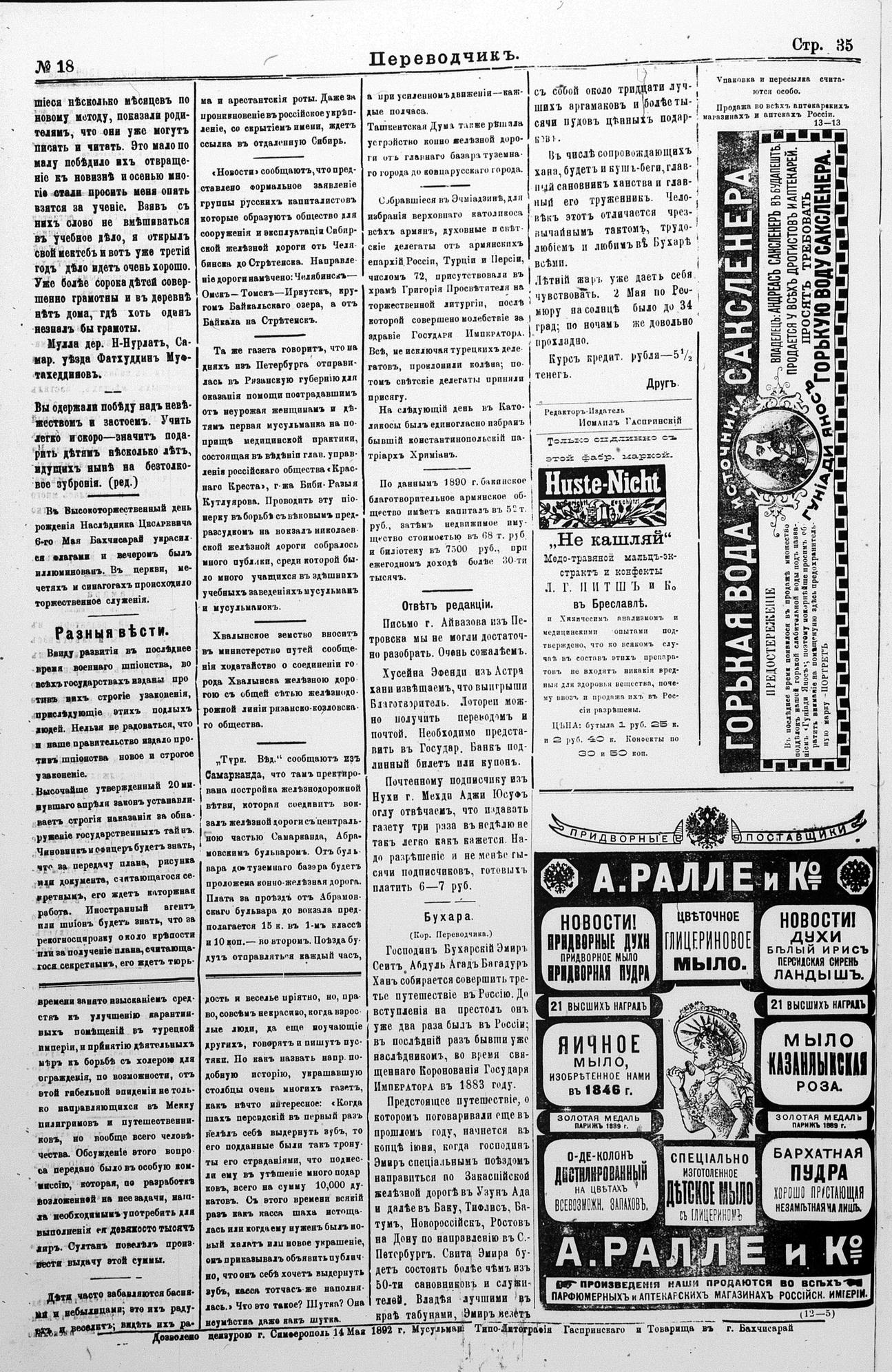 Turkish-Russian newspaper published in Crimea by İsmail Gaspıralı.