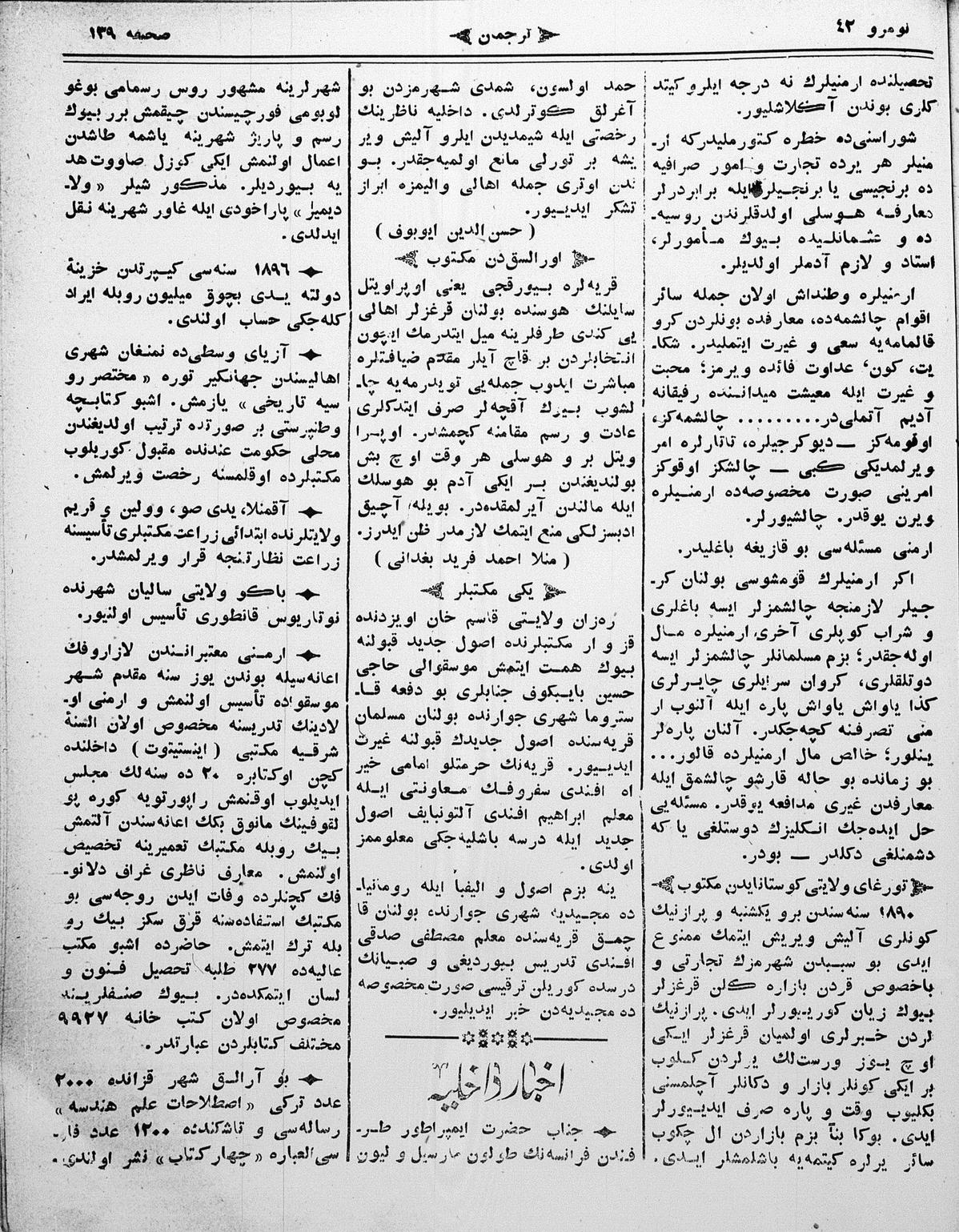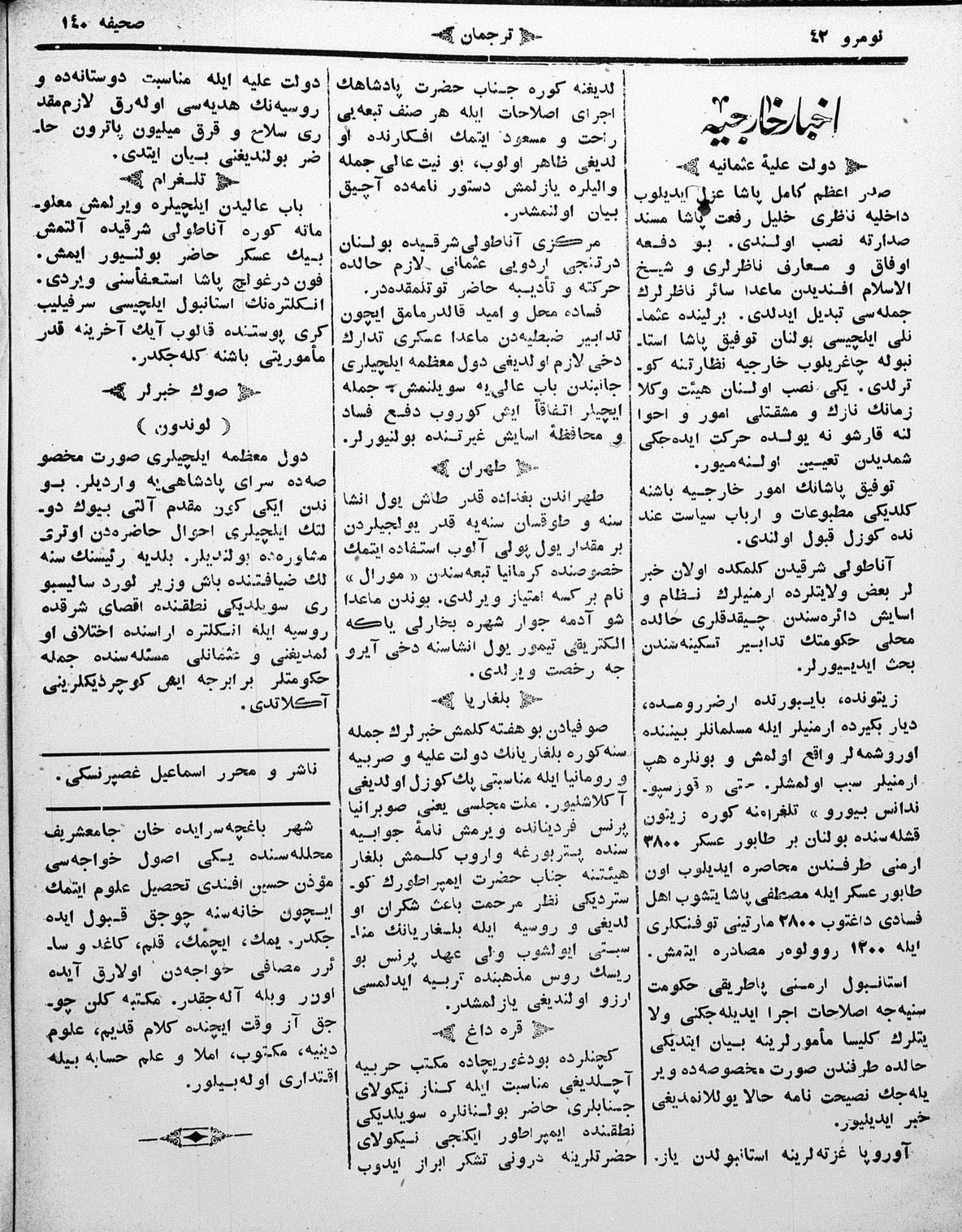 The name of the newspaper changed to Tercüman-ı Ahval-i Zaman in 1905. In 1909, it started to be published under its first name, Tercüman.