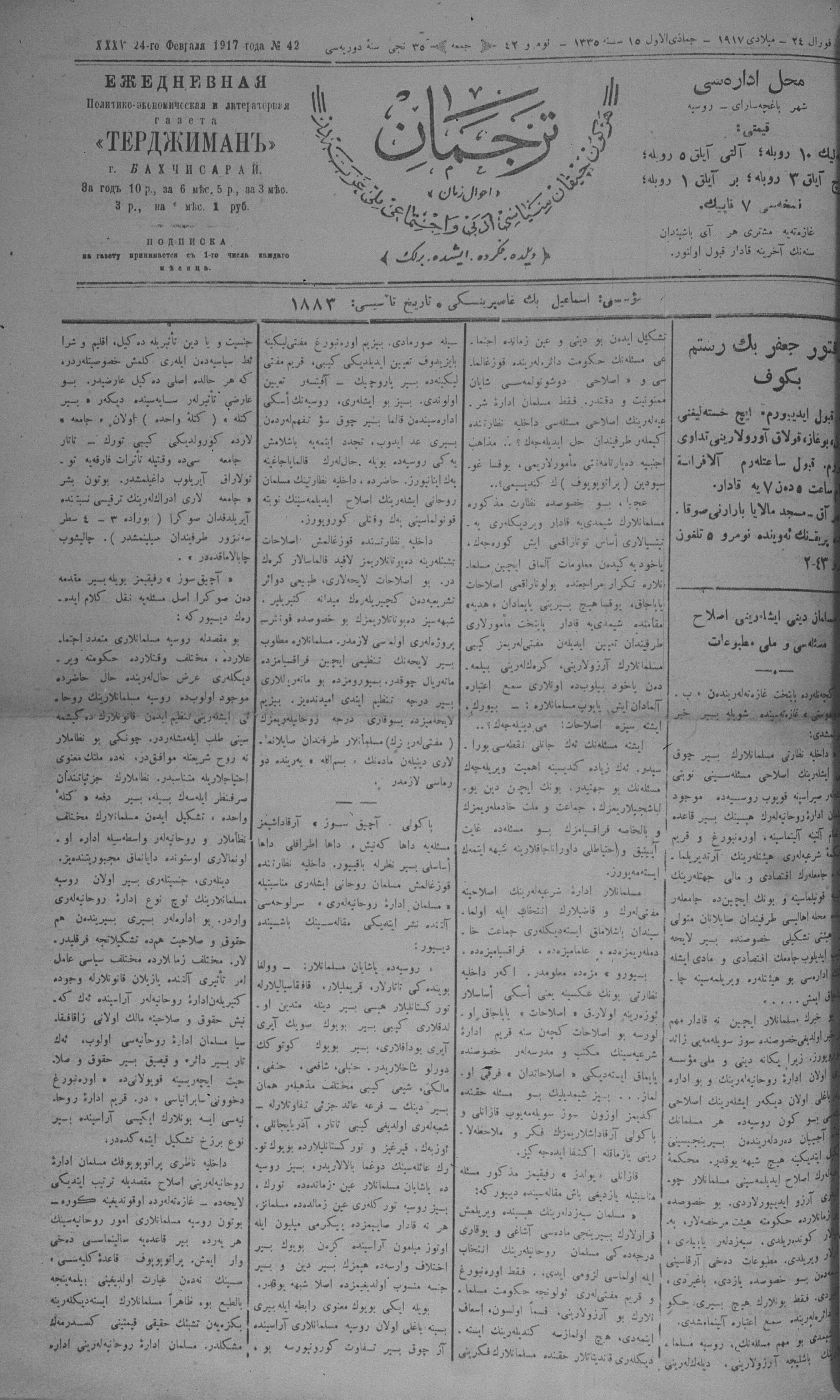 Tercüman, 24 February 1917 Year 35 No 42