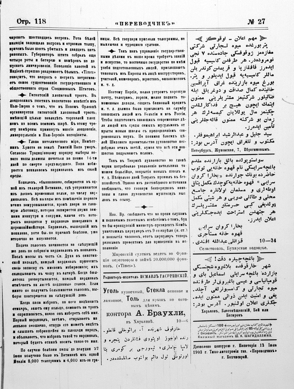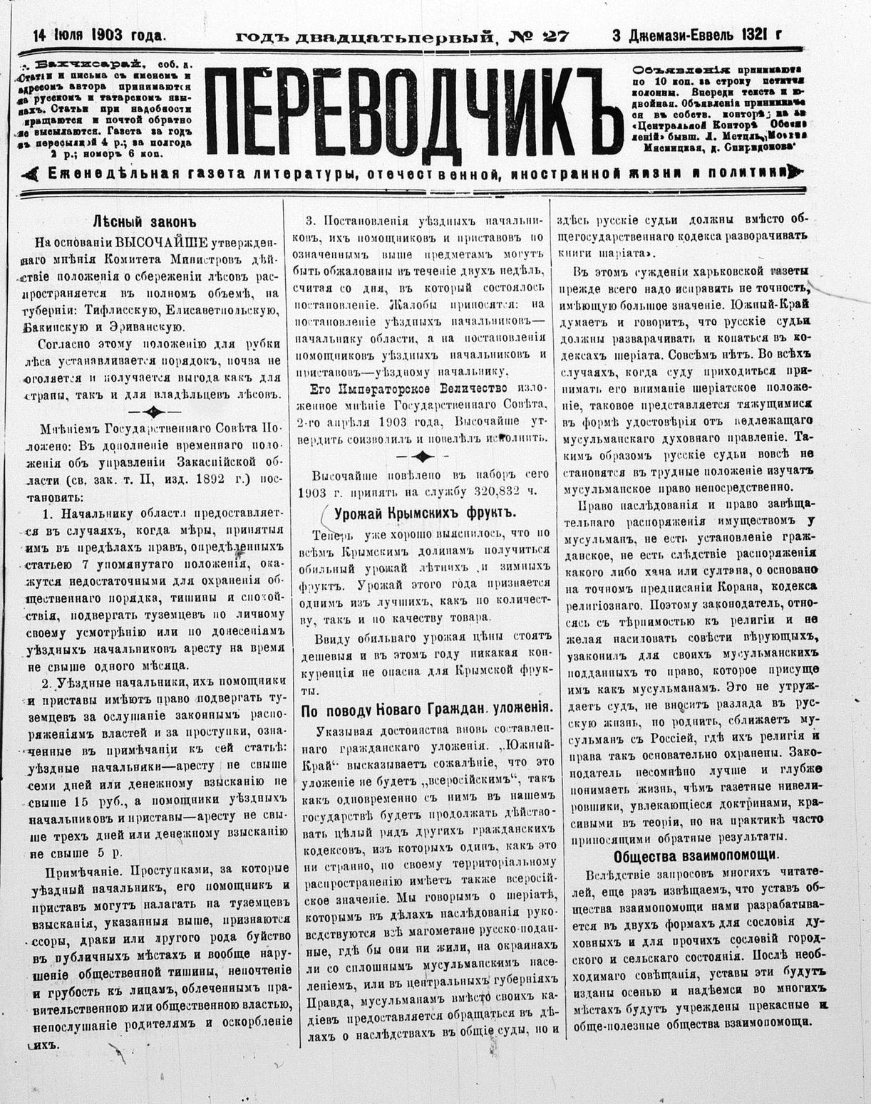 Tercüman, 14 July 1903 Year 21 No 27