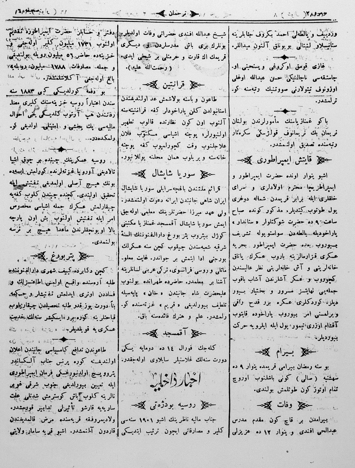 The name of the newspaper changed to Tercüman-ı Ahval-i Zaman in 1905. In 1909, it started to be published under its first name, Tercüman.