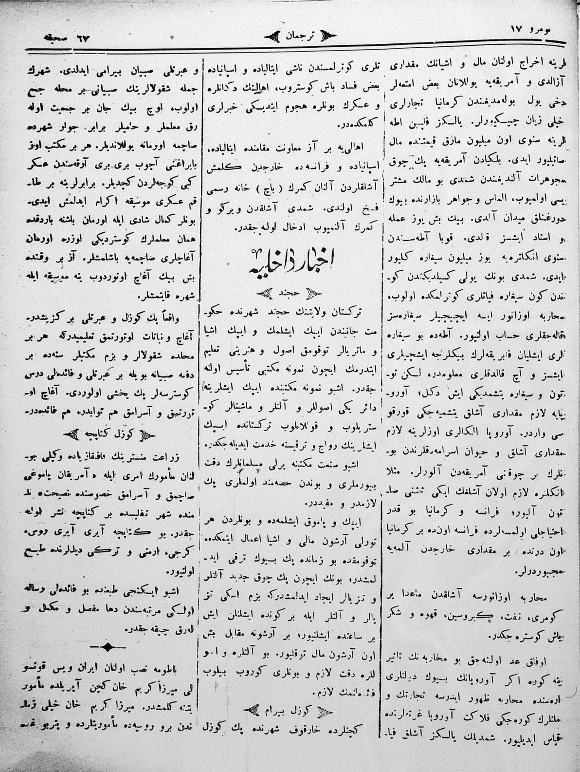 The name of the newspaper changed to Tercüman-ı Ahval-i Zaman in 1905. In 1909, it started to be published under its first name, Tercüman.