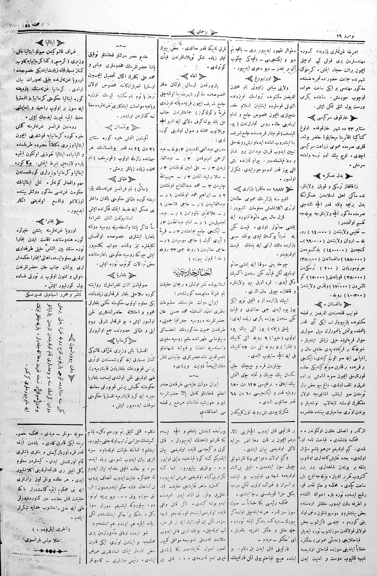 Tercüman, 01 October 1887 Year 5 No 29