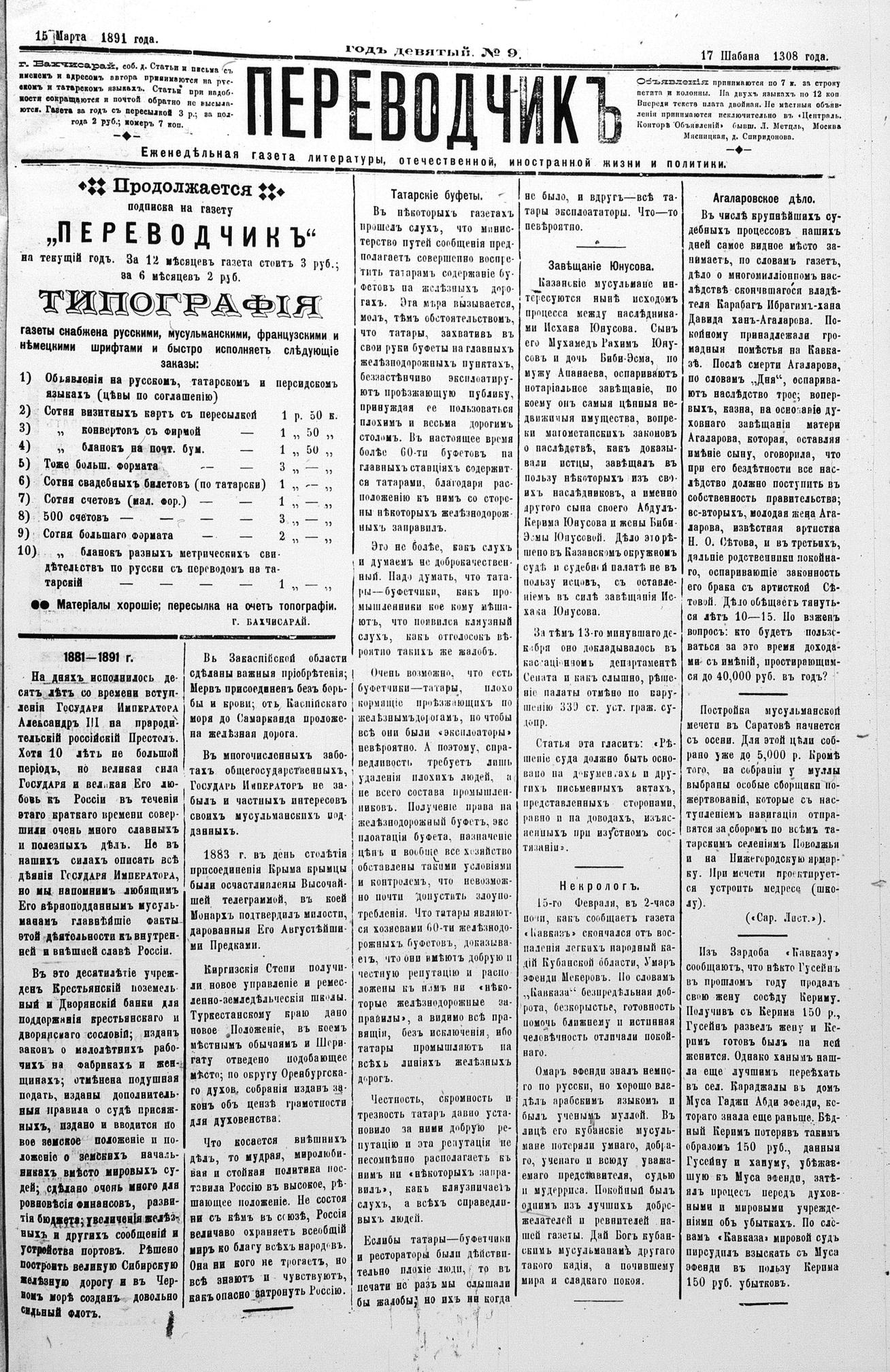 Turkish-Russian newspaper published in Crimea by İsmail Gaspıralı.