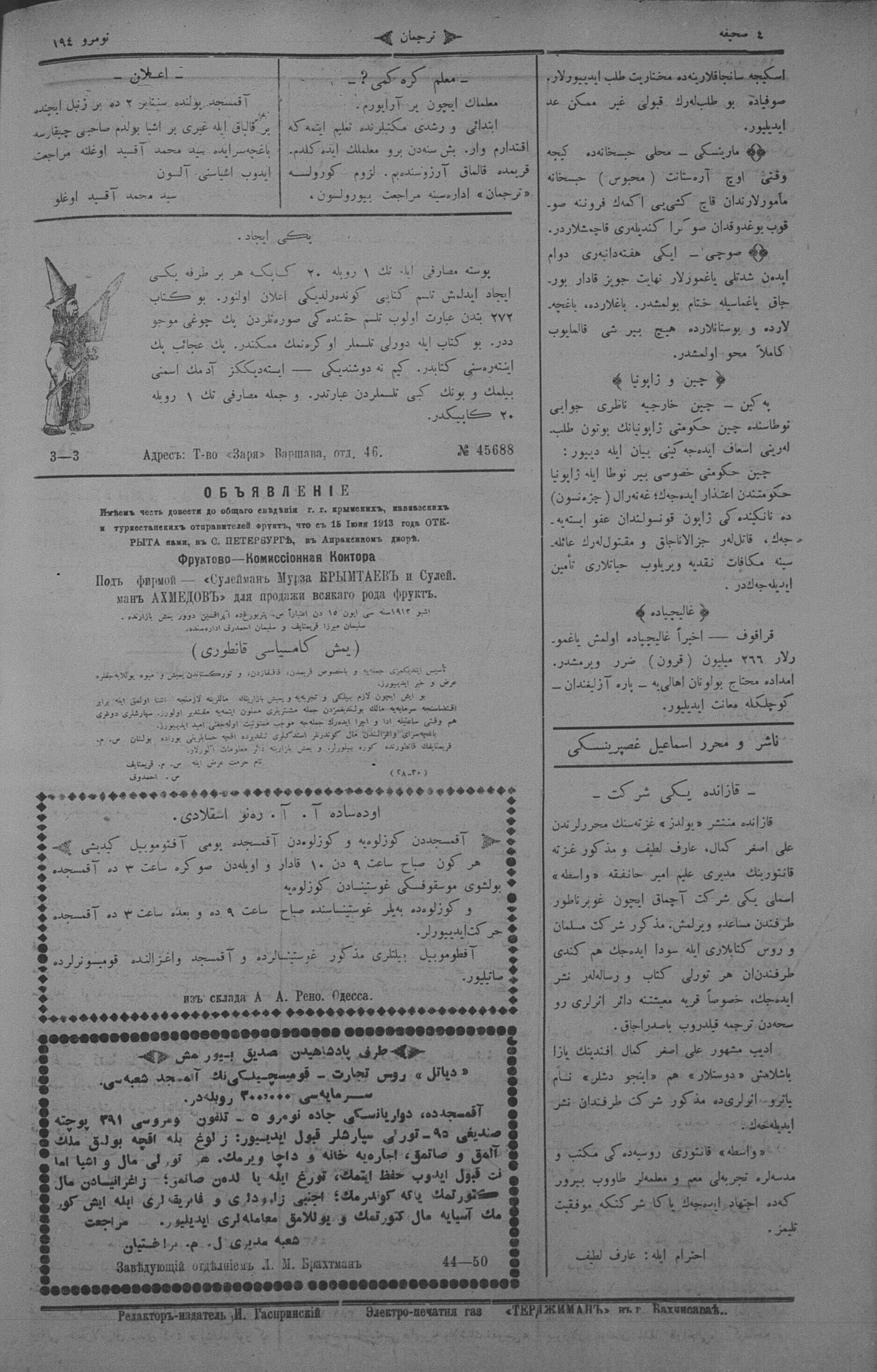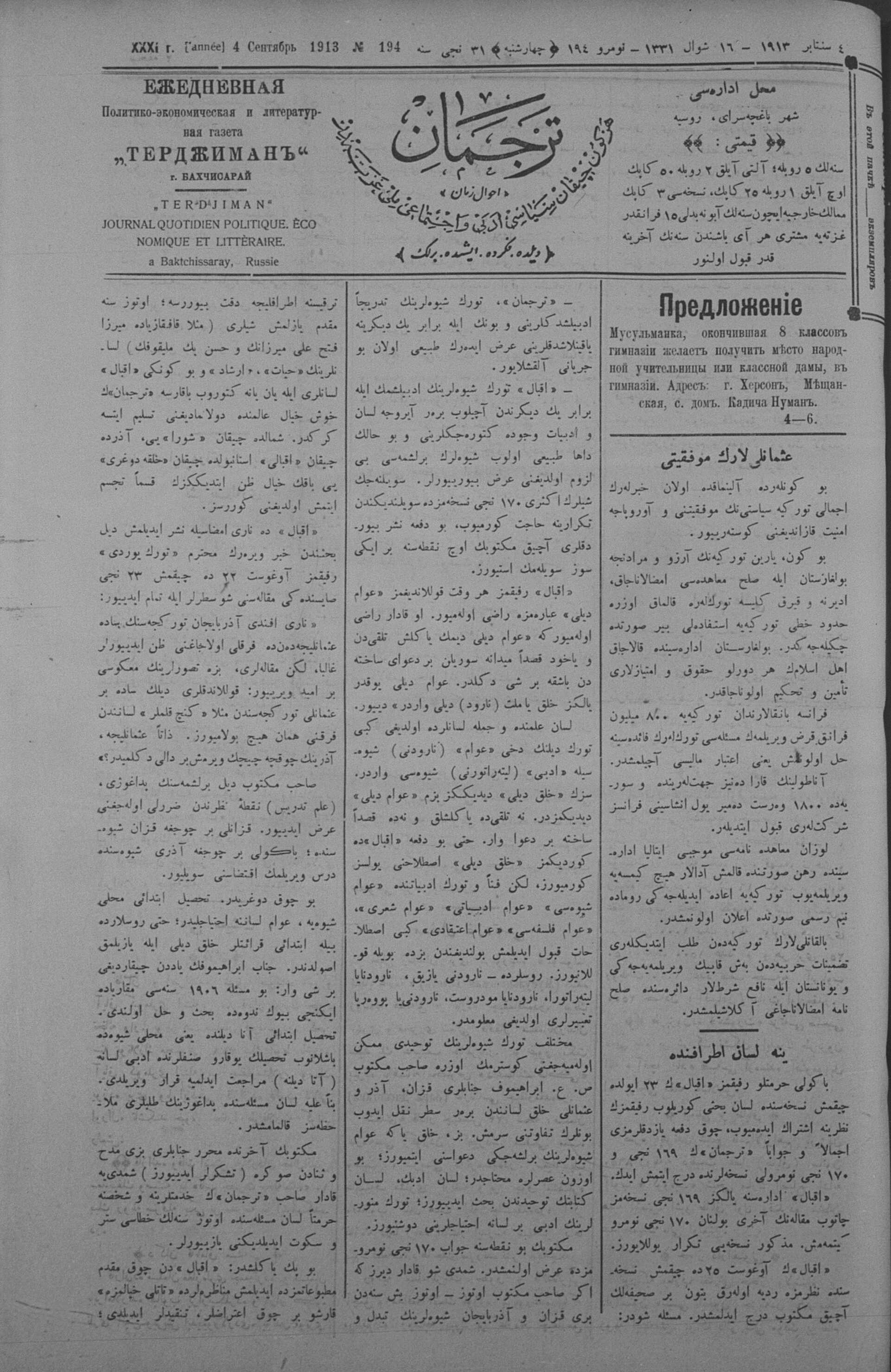 Turkish-Russian newspaper published in Crimea by İsmail Gaspıralı.