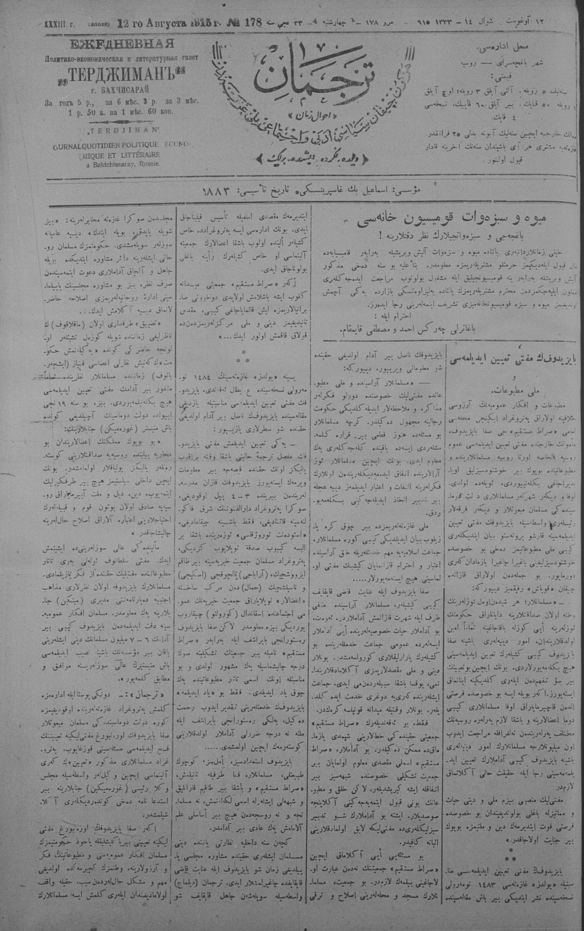 Turkish-Russian newspaper published in Crimea by İsmail Gaspıralı.