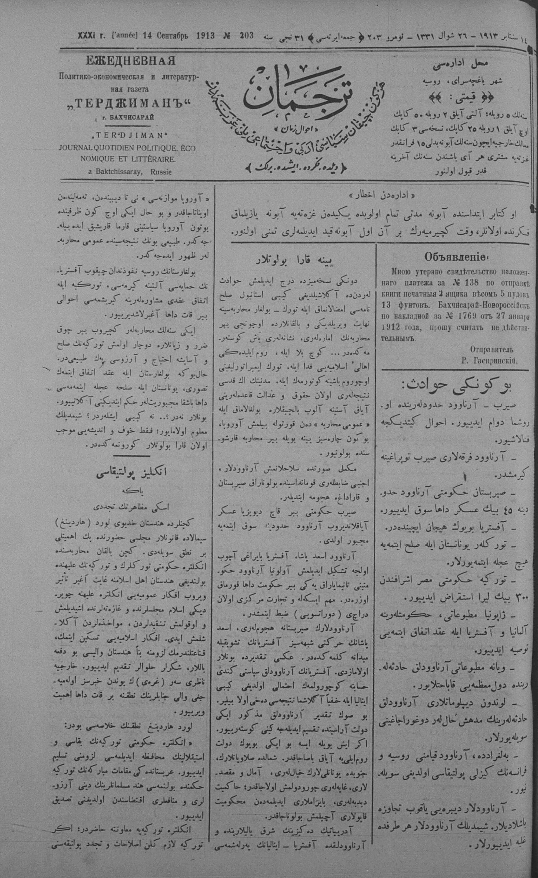 Turkish-Russian newspaper published in Crimea by İsmail Gaspıralı.