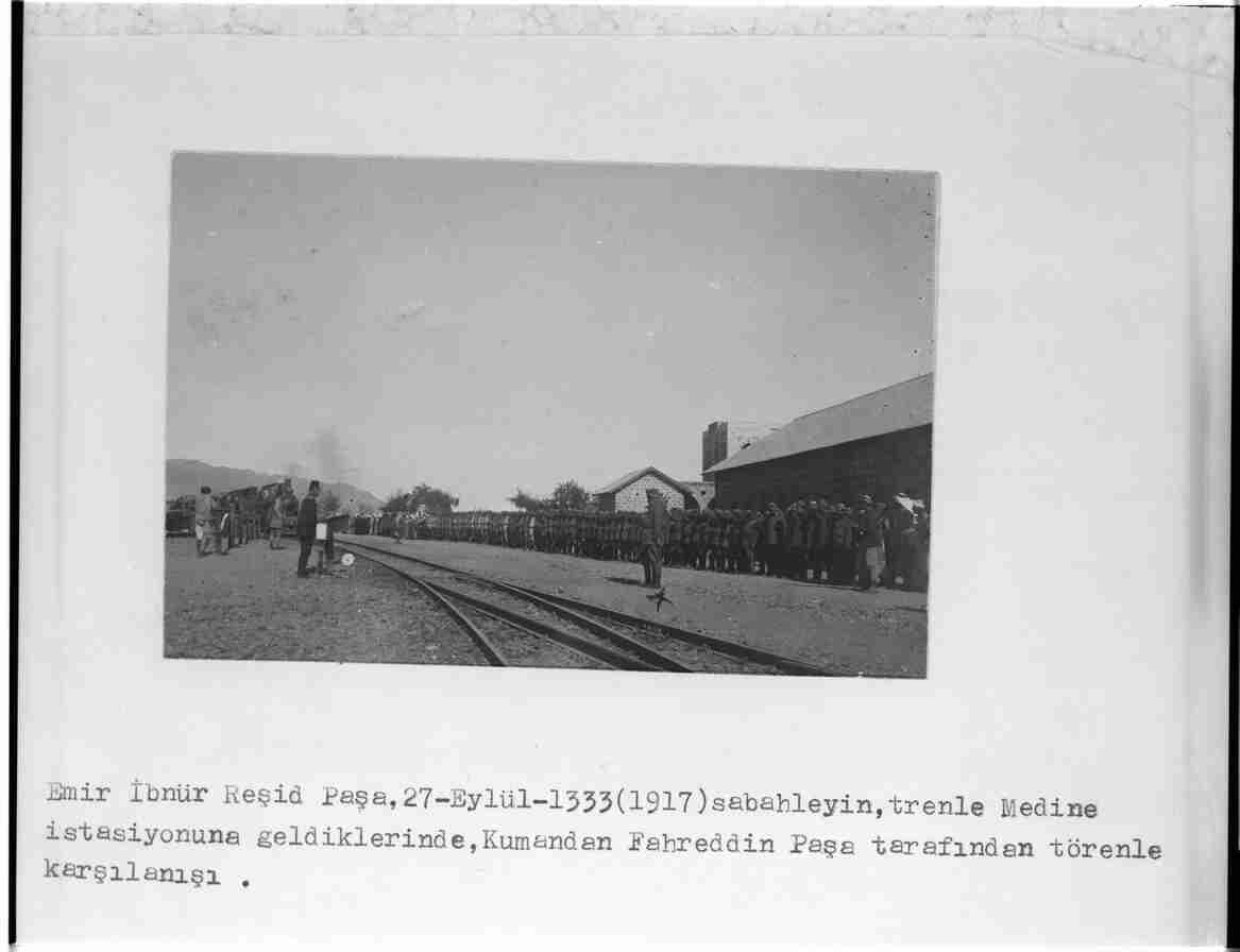Emir İbn`ür-Reşid Paşa`nın Medine İstasyonu`nda Fahreddin Paşa tarafından törenle karşılanışı 27 Eylül 1917 sabahı
