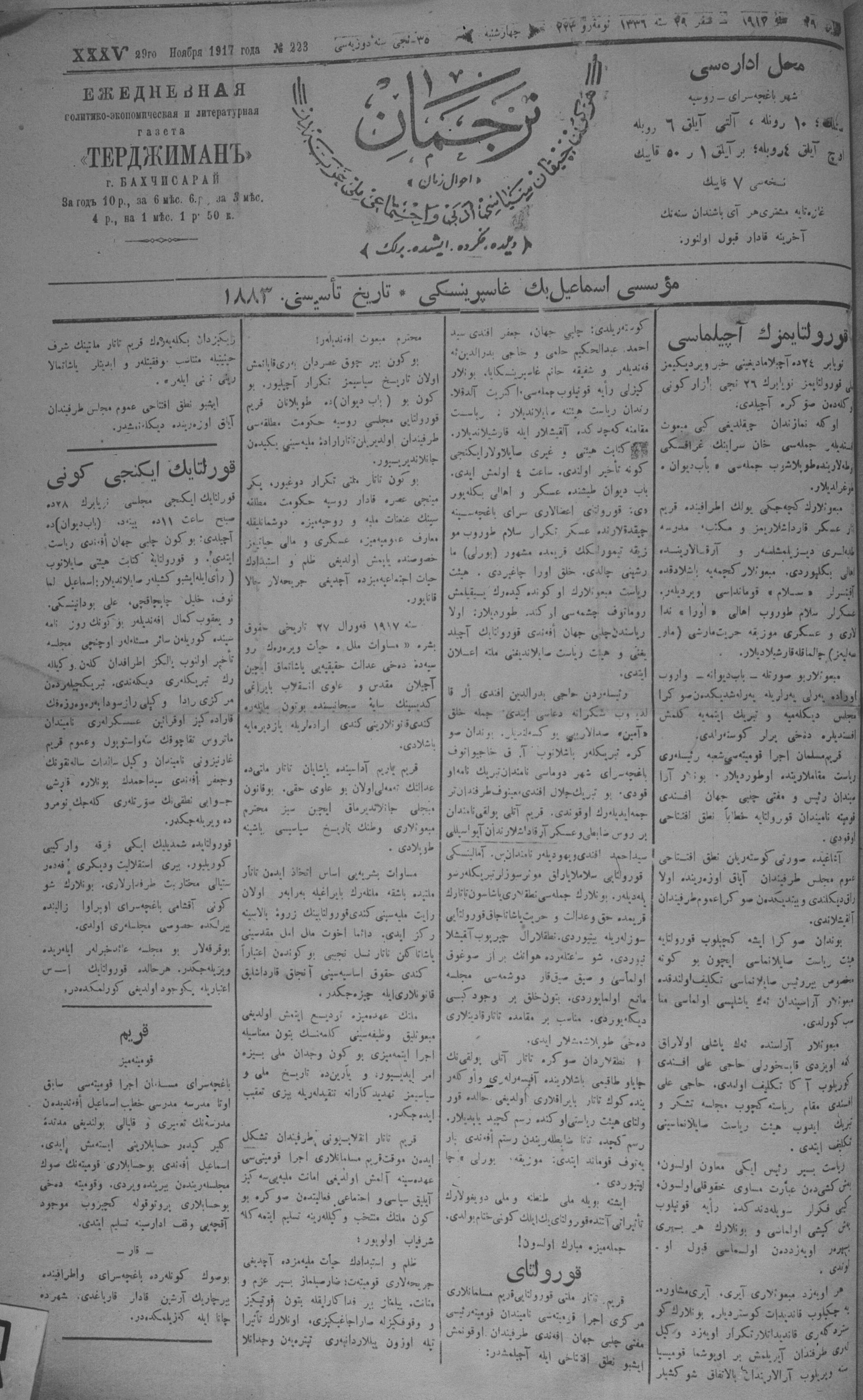 Tercüman, 29 November 1917 Year 35 No 223