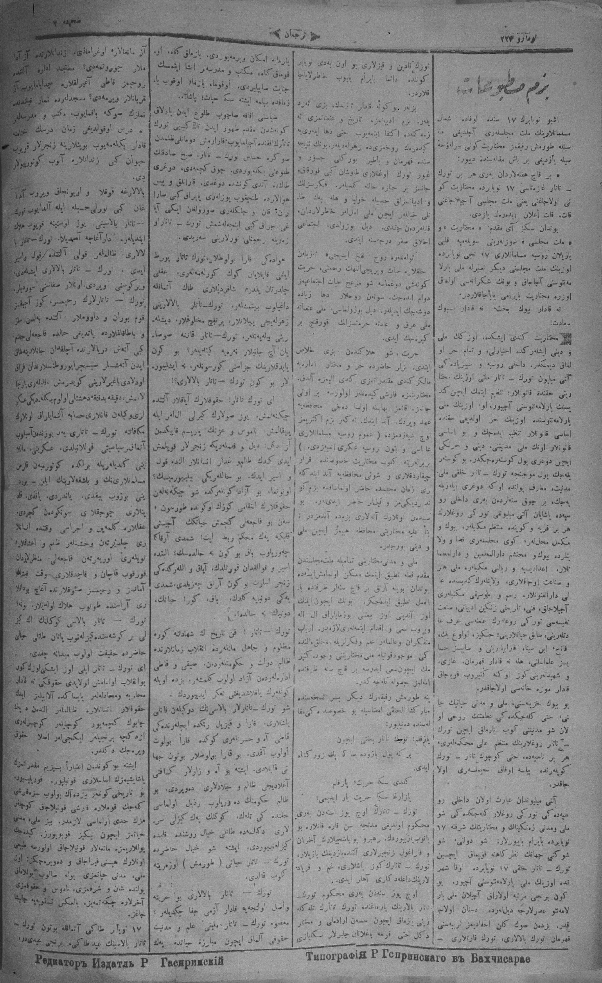 Turkish-Russian newspaper published in Crimea by İsmail Gaspıralı.