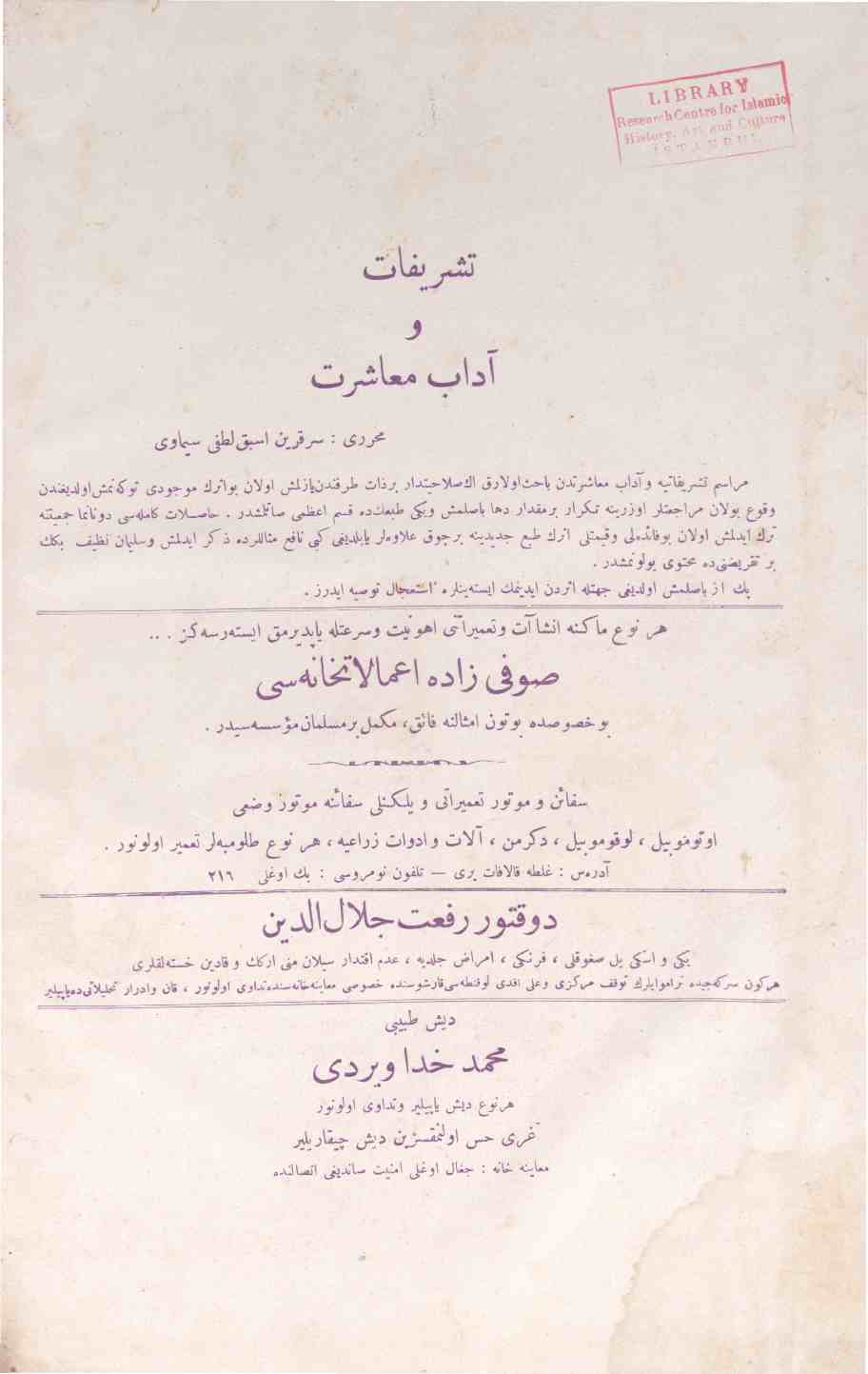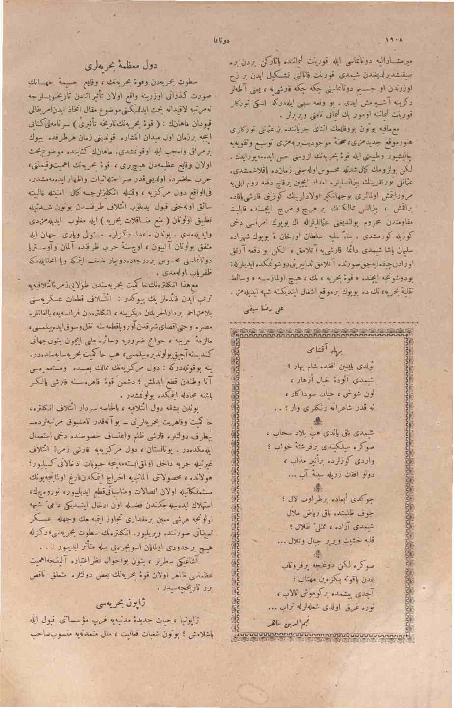 The name of the periodical was published under the following titles in different periods: Donanma: Donanma Cemiyetinin haftalık gazetesi; Donanma: istikbal denizlerdedir; Donanma: şimdilik ayda bir defa neşrolunur; Donanma: ayda bir defa neşr olunur, musavver, ahlaki, edebi, tarihi, fenni mecmuadır.