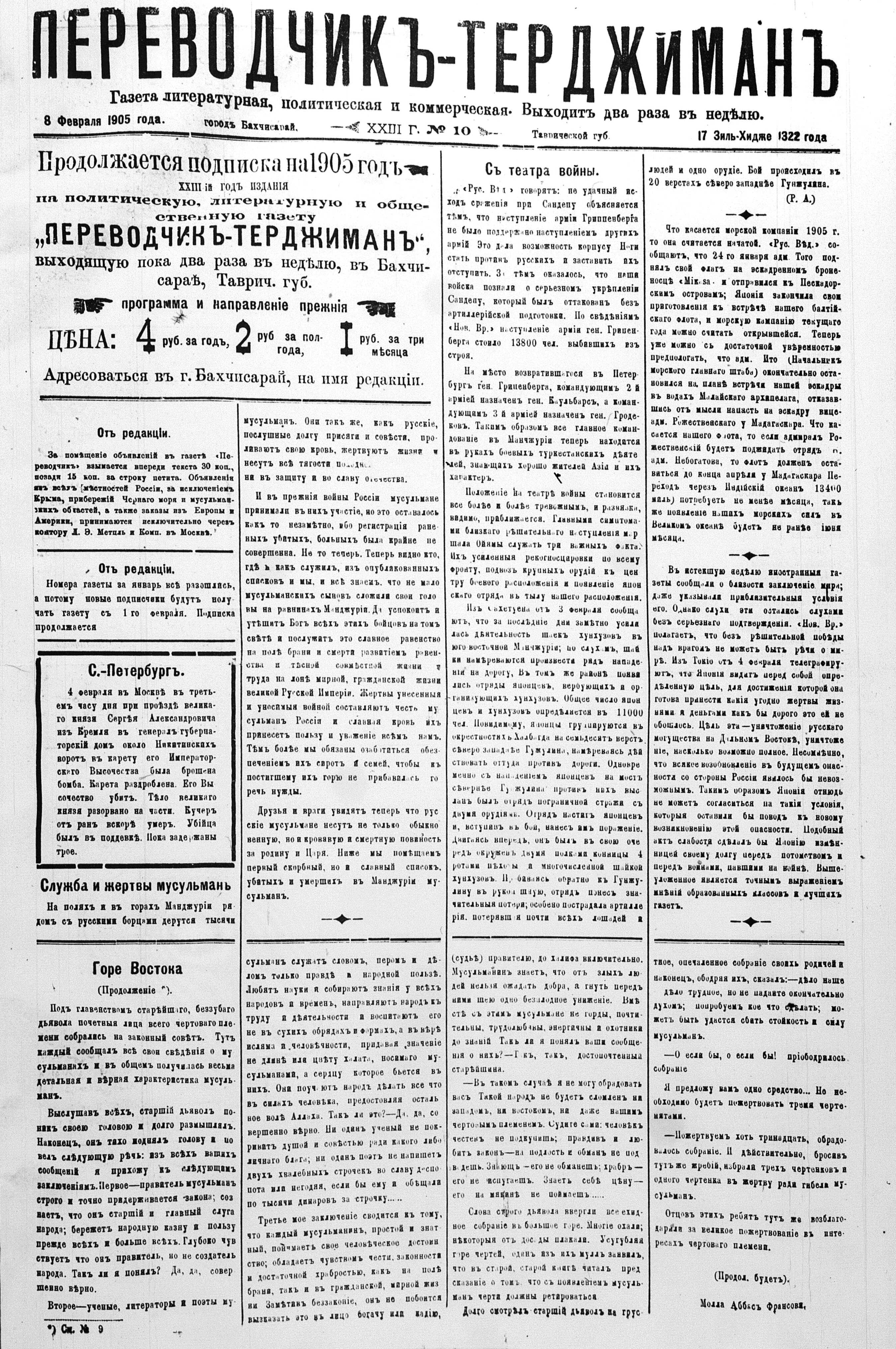 Tercüman, 08 February 1905 Year 23 No 10
