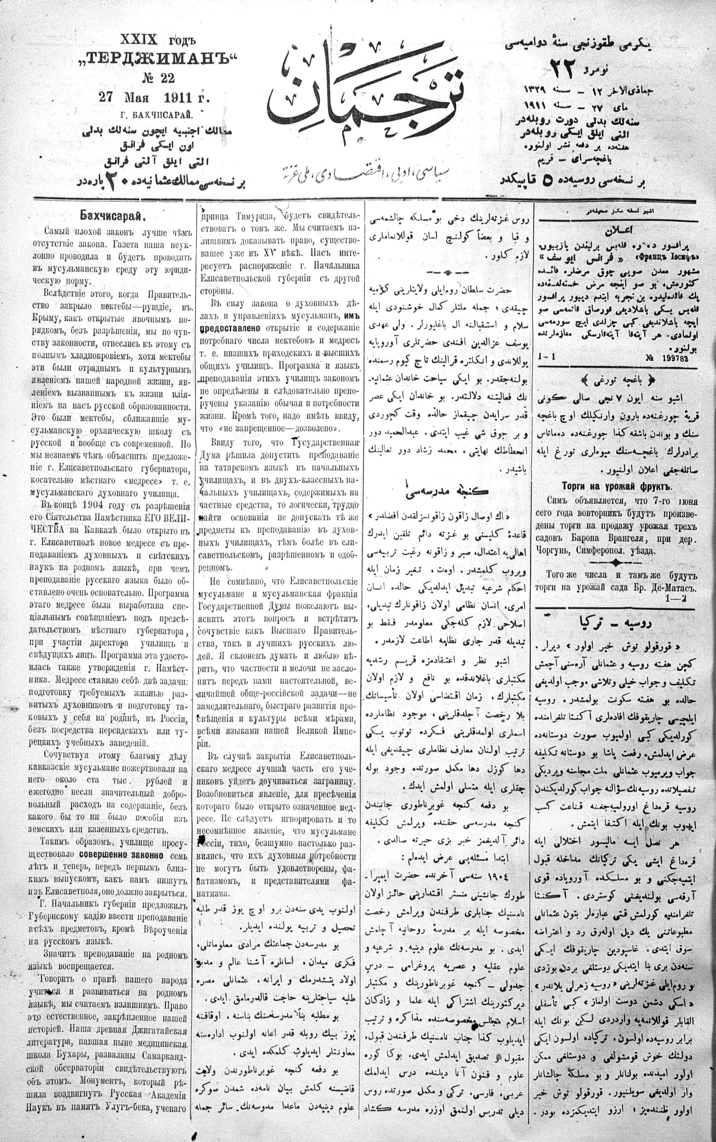 Turkish-Russian newspaper published in Crimea by İsmail Gaspıralı.