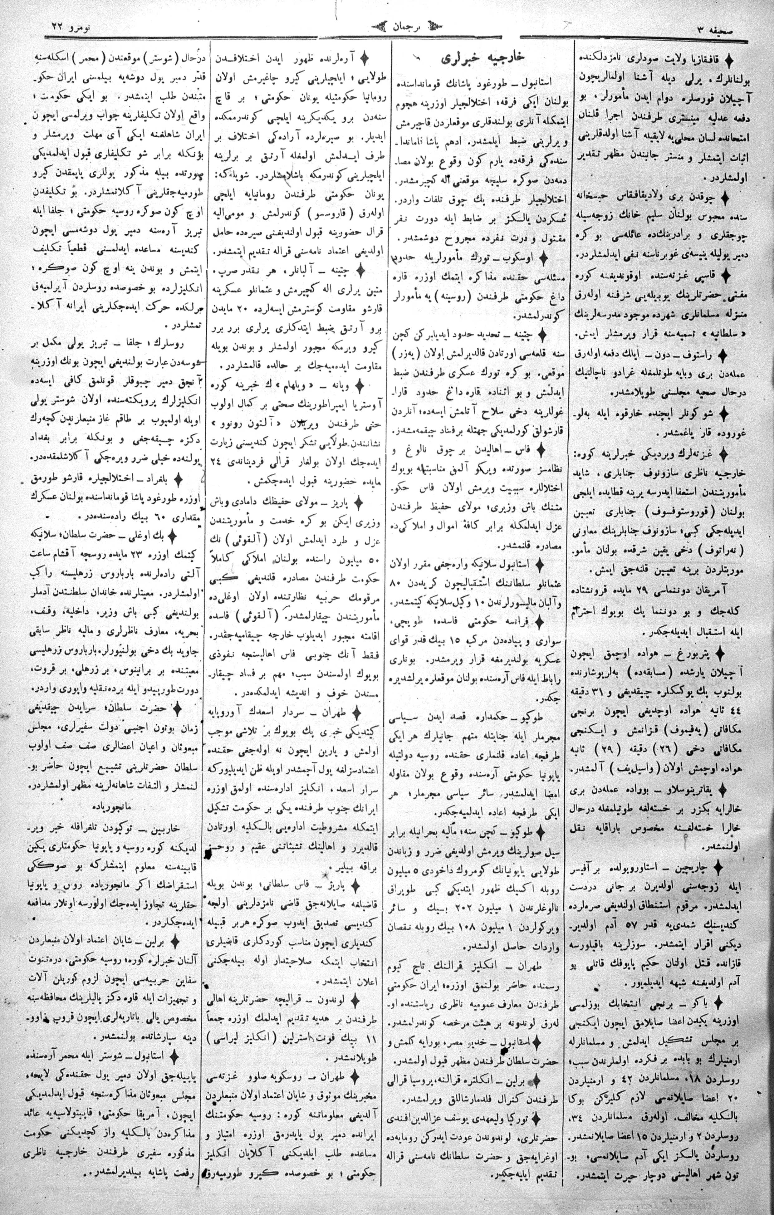 The name of the newspaper changed to Tercüman-ı Ahval-i Zaman in 1905. In 1909, it started to be published under its first name, Tercüman.