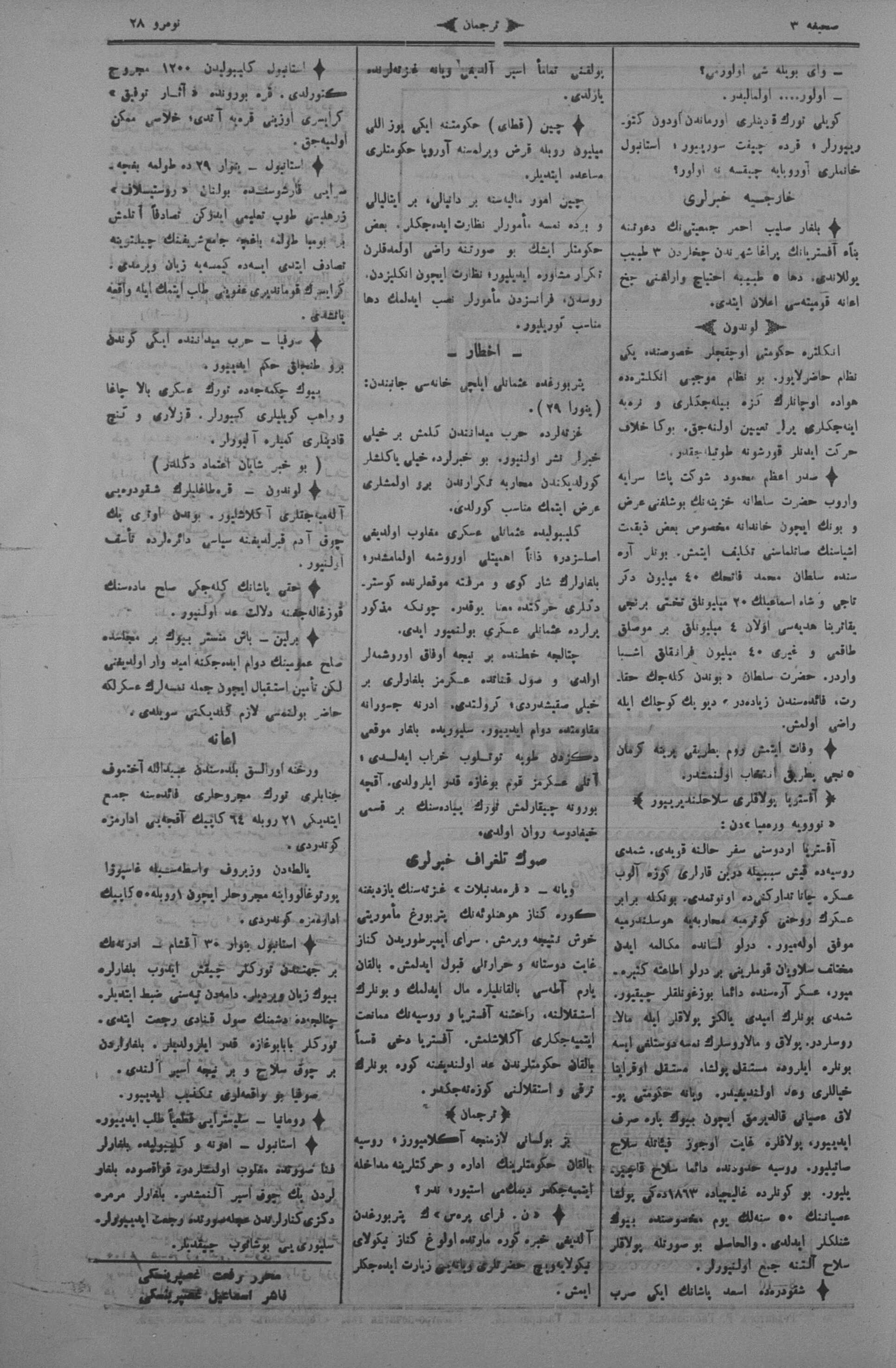The name of the newspaper changed to Tercüman-ı Ahval-i Zaman in 1905. In 1909, it started to be published under its first name, Tercüman.