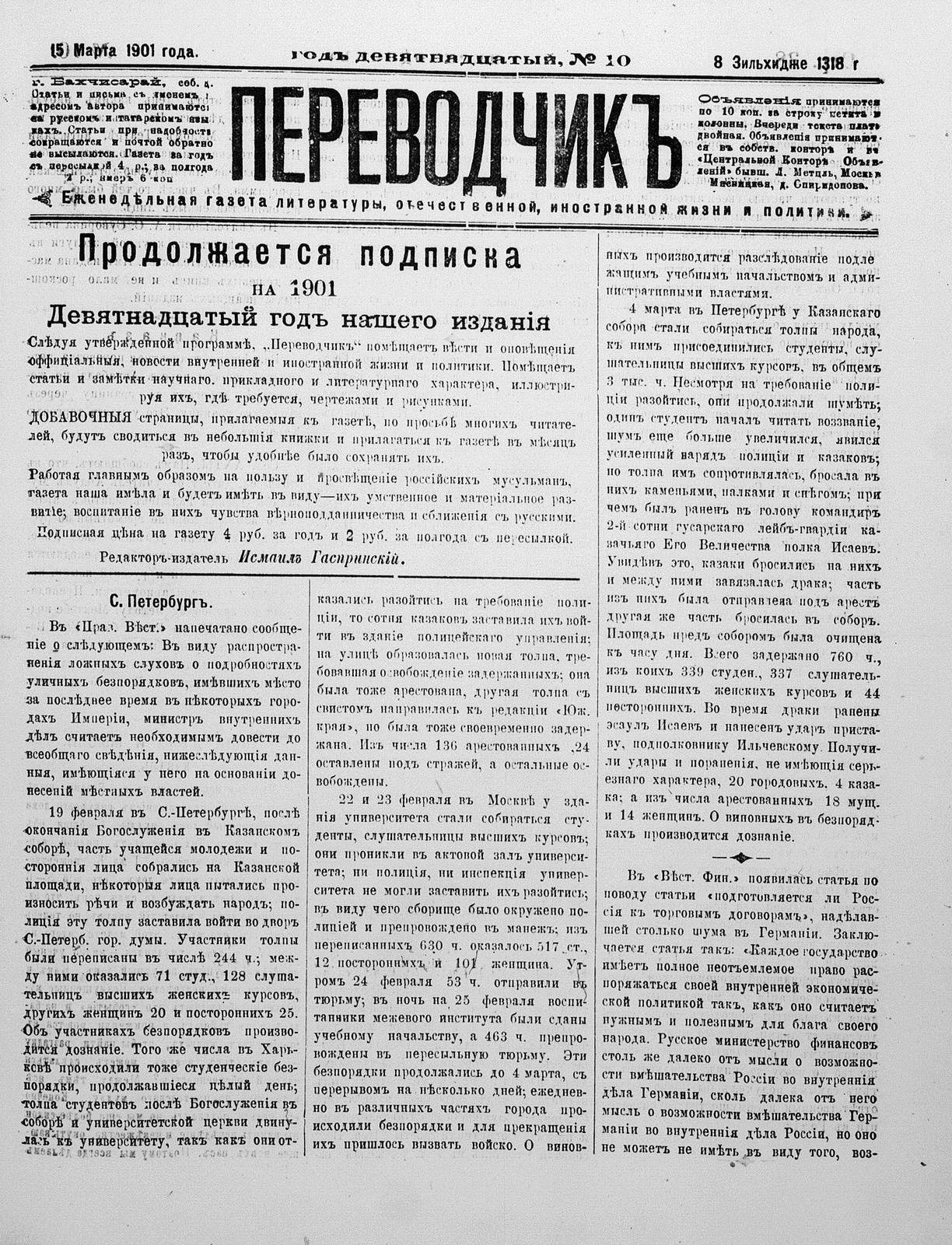 Turkish-Russian newspaper published in Crimea by İsmail Gaspıralı.