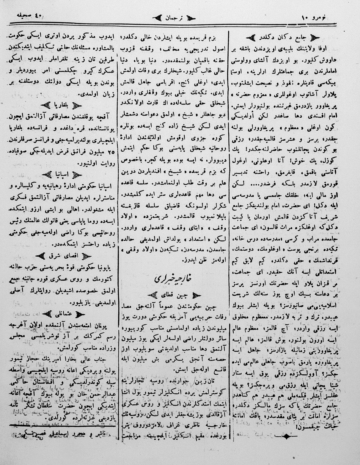 The name of the newspaper changed to Tercüman-ı Ahval-i Zaman in 1905. In 1909, it started to be published under its first name, Tercüman.