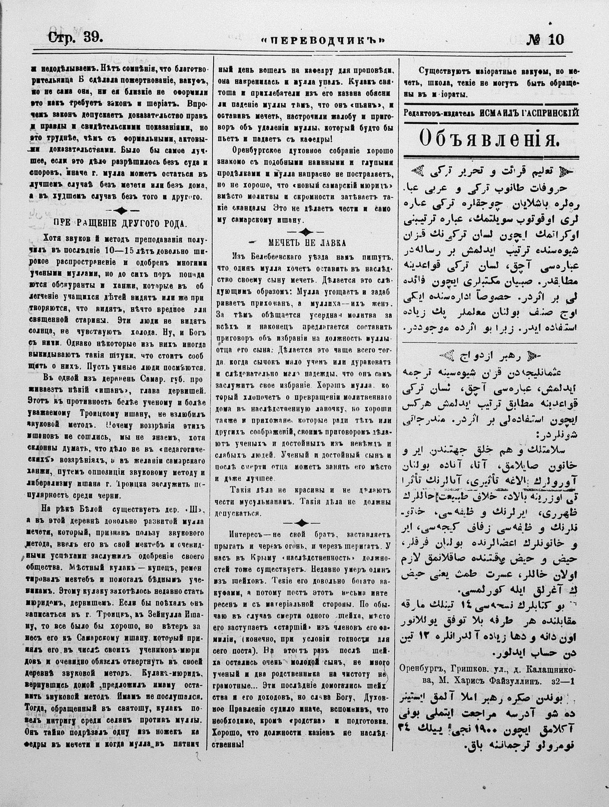 Different spelling of the author name: Gaspıralı, İsmail Bey, 1851-1914.