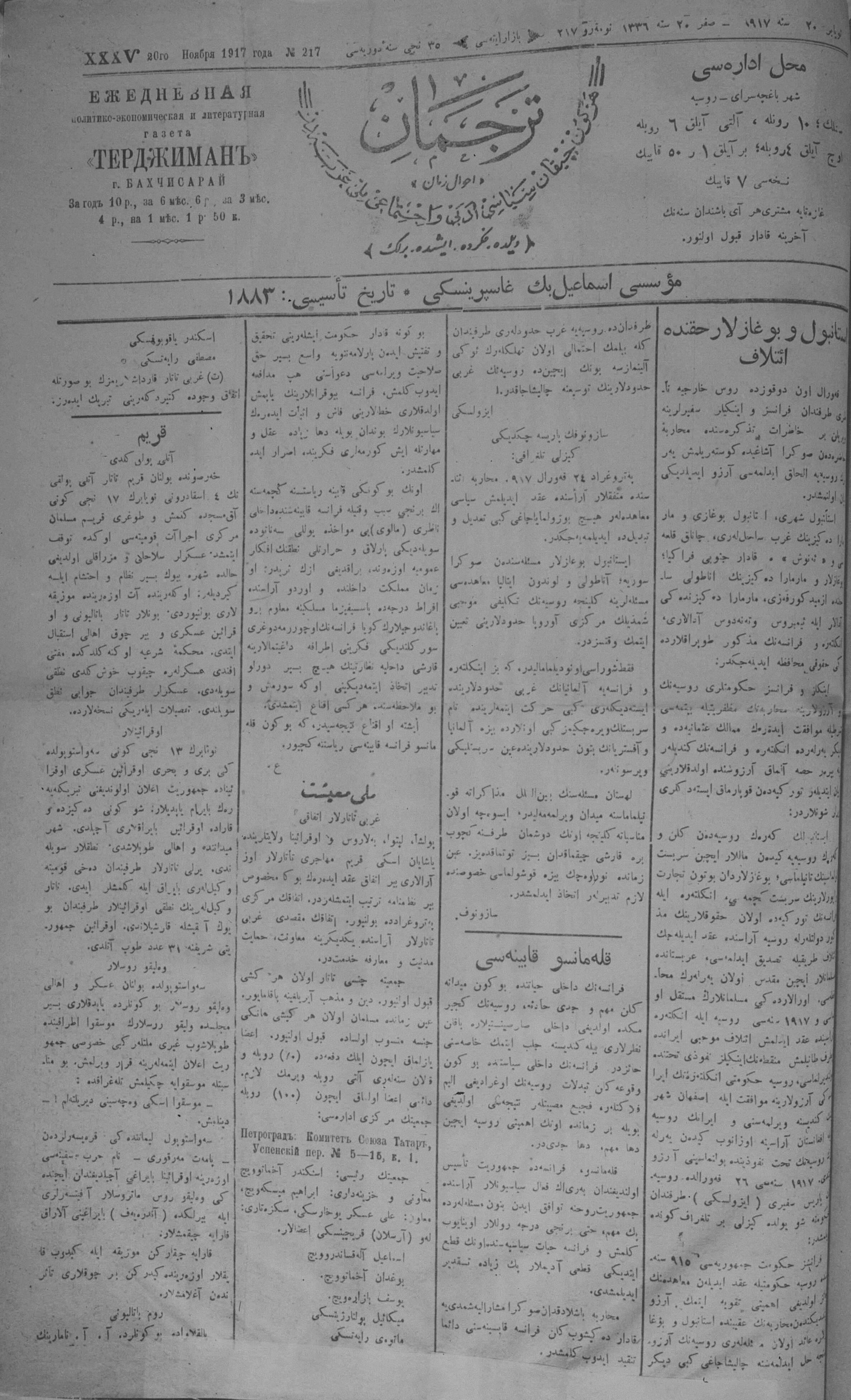 Tercüman, 20 November 1917 Year 35 No 217