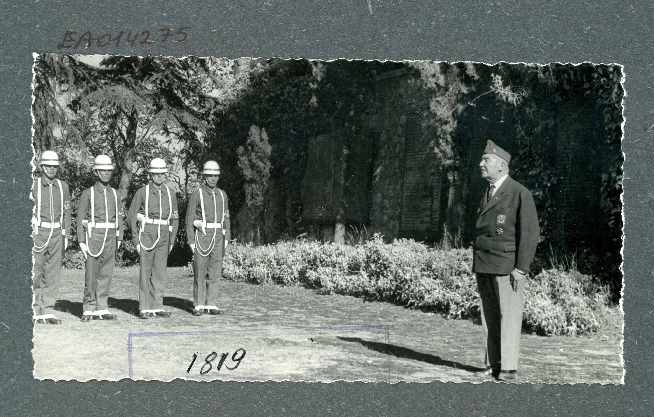 Alman muharip gazilerin Dolmabahçe Sarayı'nı ziyaretlerinde Ekrem Rüştü Akömer ve tören kıtası