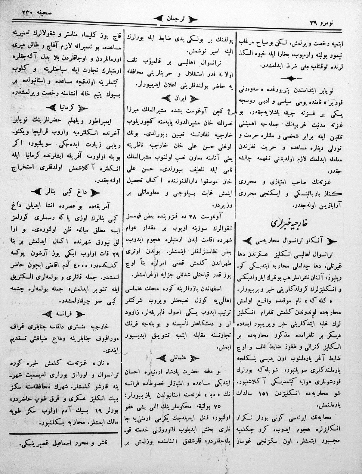 The name of the newspaper changed to Tercüman-ı Ahval-i Zaman in 1905. In 1909, it started to be published under its first name, Tercüman.
