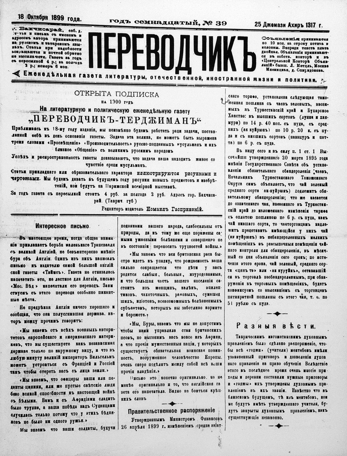 Turkish-Russian newspaper published in Crimea by İsmail Gaspıralı.