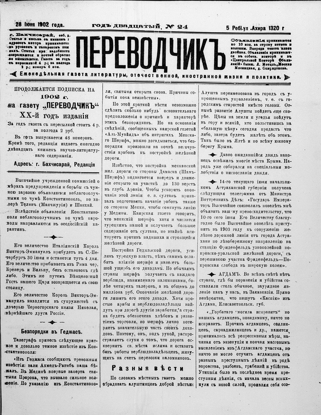 Turkish-Russian newspaper published in Crimea by İsmail Gaspıralı.