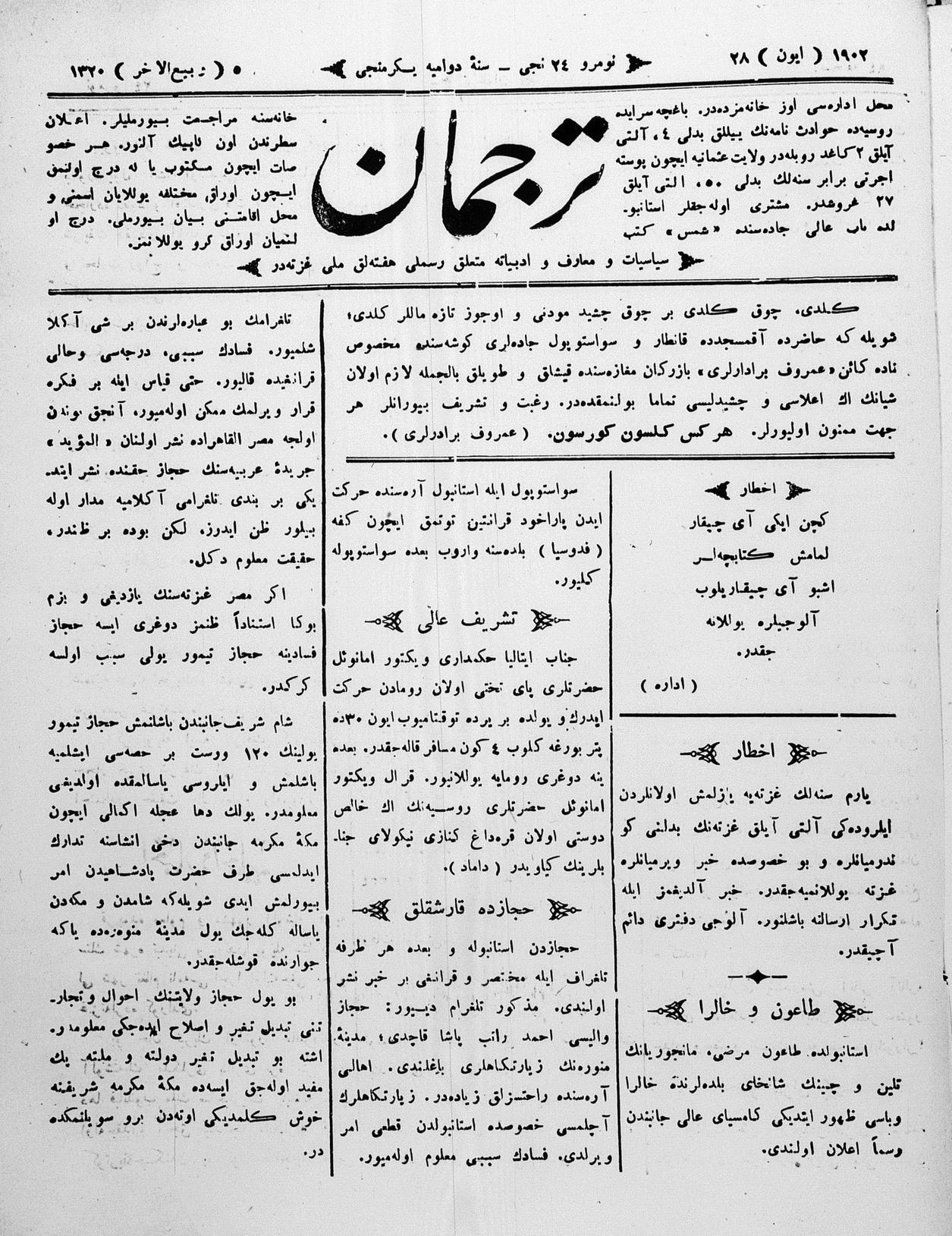 The name of the newspaper changed to Tercüman-ı Ahval-i Zaman in 1905. In 1909, it started to be published under its first name, Tercüman.