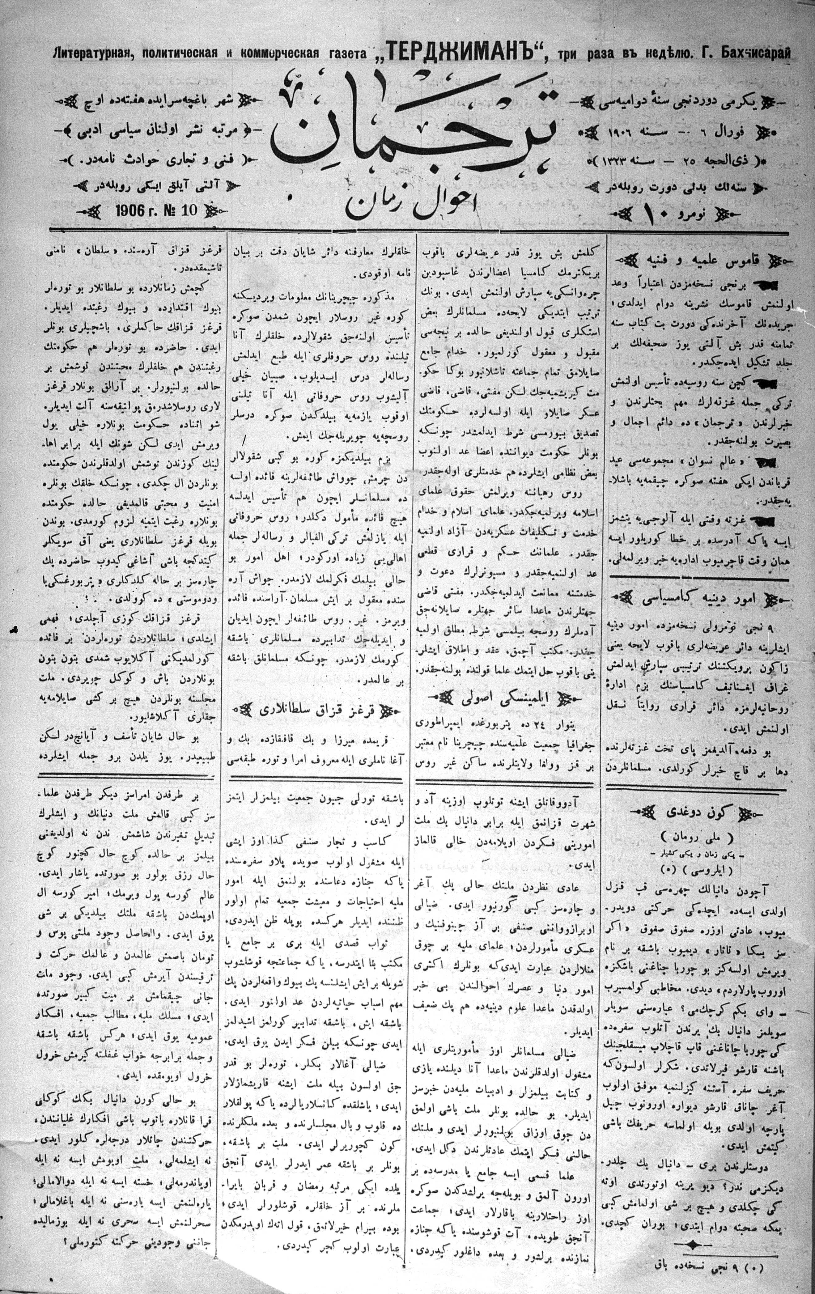 Turkish-Russian newspaper published in Crimea by İsmail Gaspıralı.