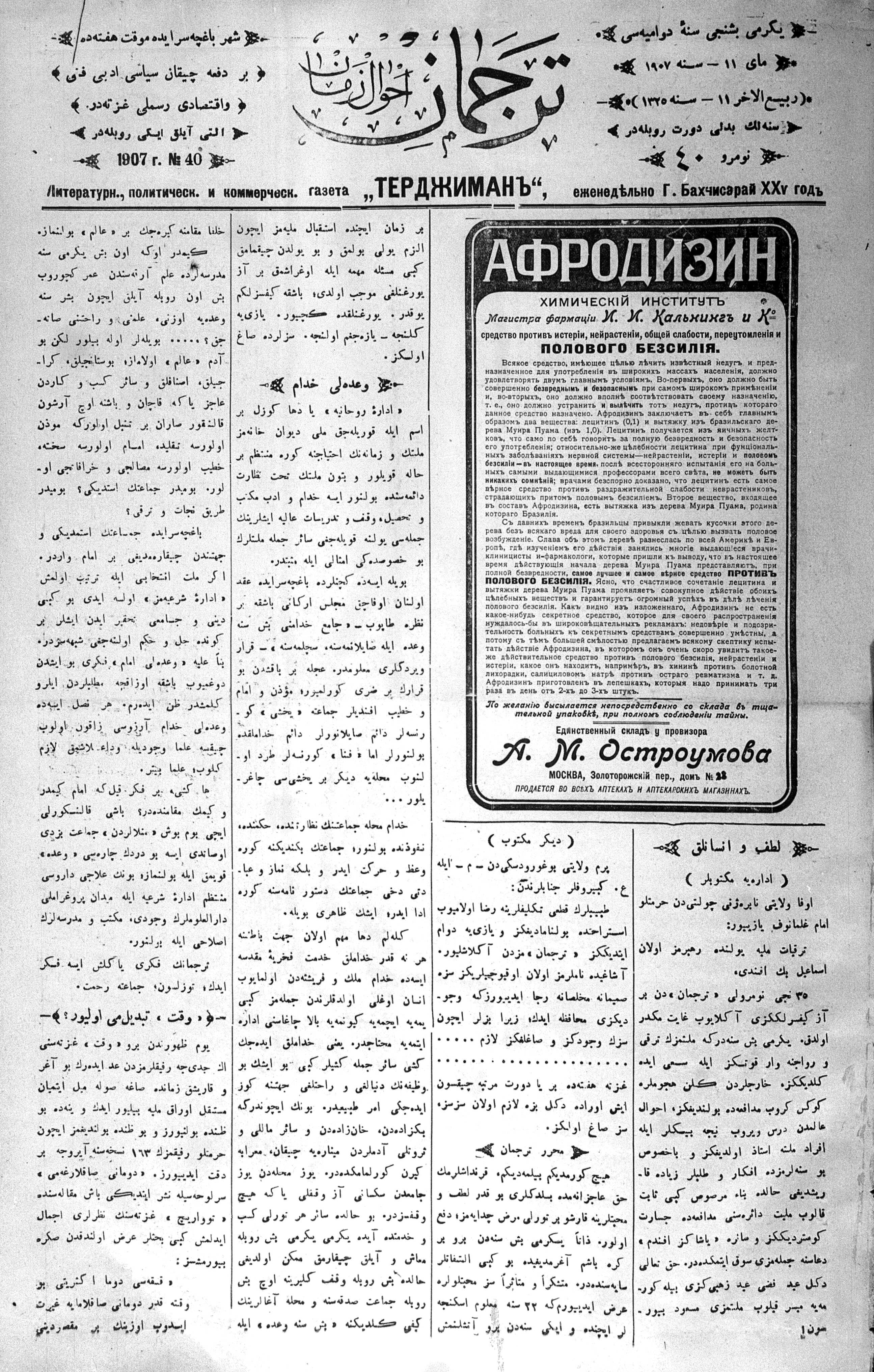 Tercüman, 11 May 1907 Year 25 No 40