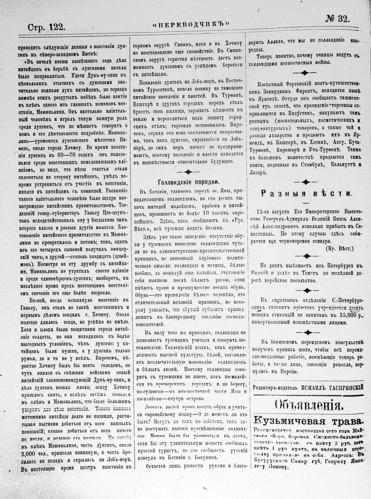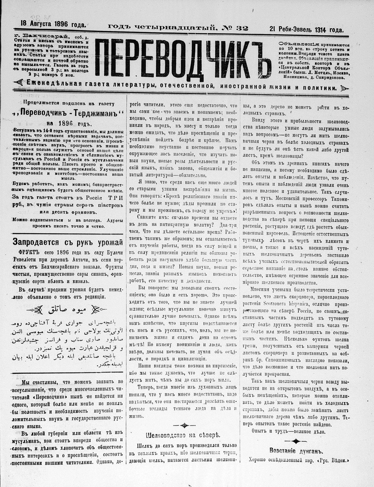 Turkish-Russian newspaper published in Crimea by İsmail Gaspıralı.