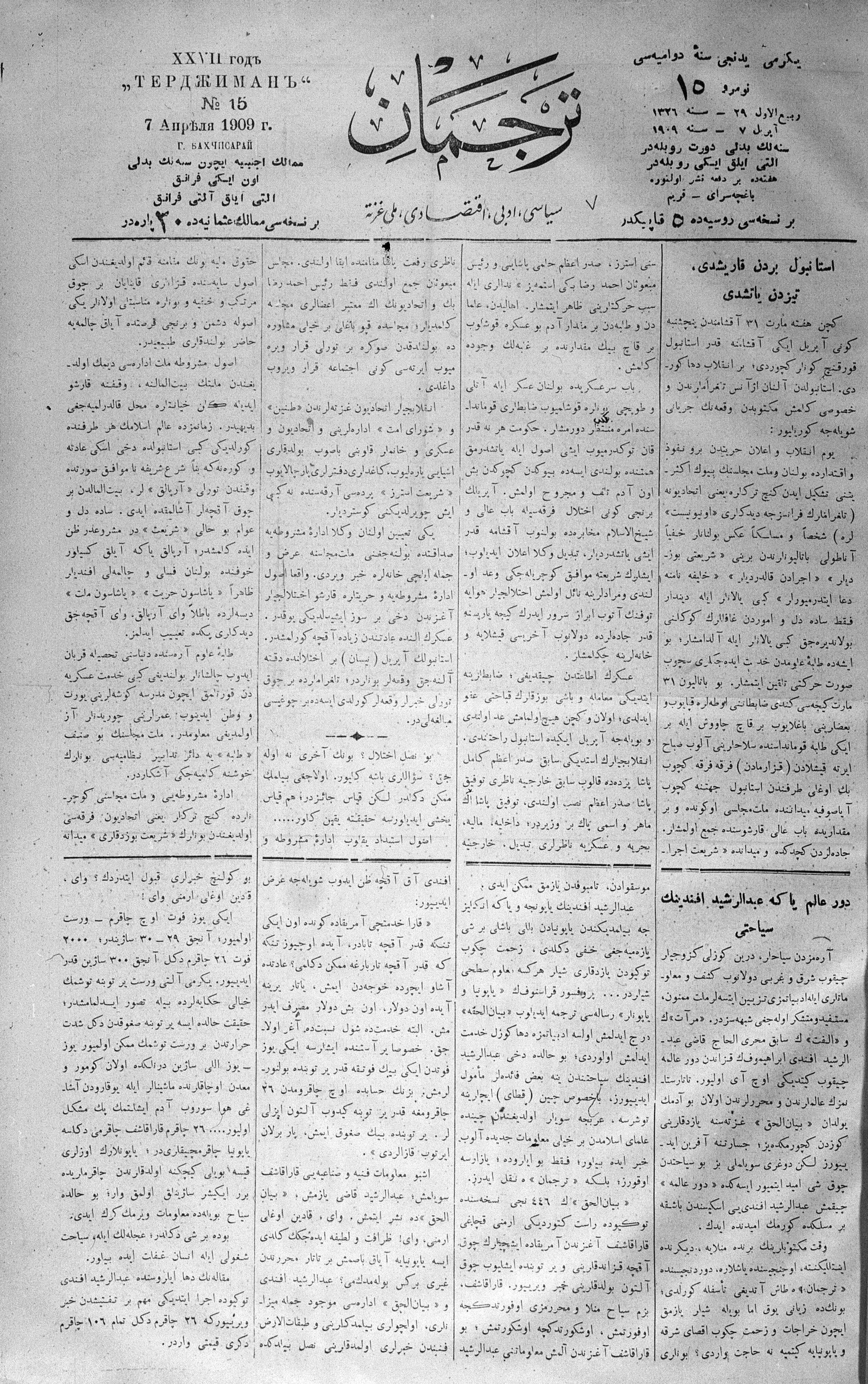 Tercüman, 07 April 1909 Year 27 No 15
