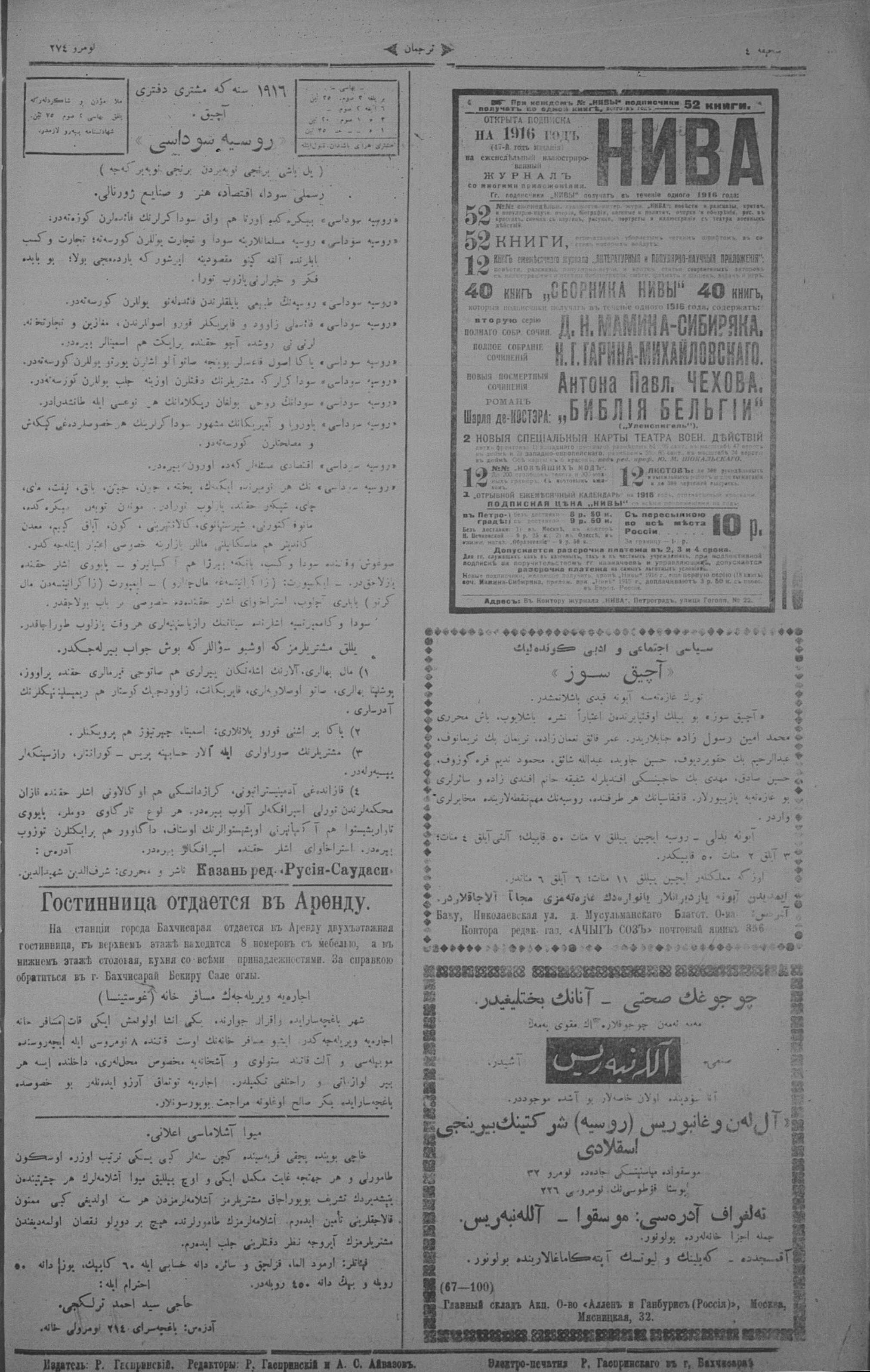 Turkish-Russian newspaper published in Crimea by İsmail Gaspıralı.