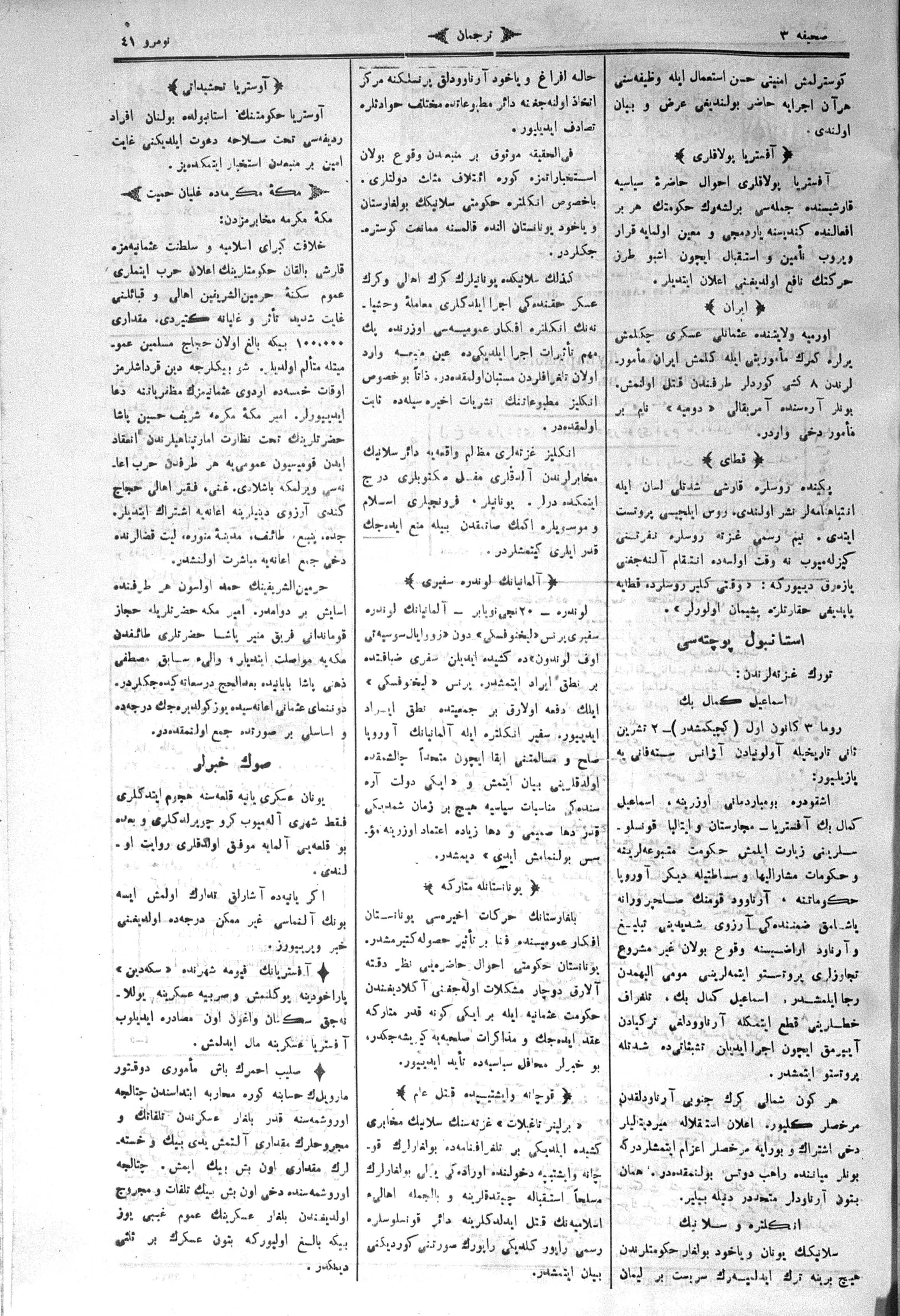 The name of the newspaper changed to Tercüman-ı Ahval-i Zaman in 1905. In 1909, it started to be published under its first name, Tercüman.